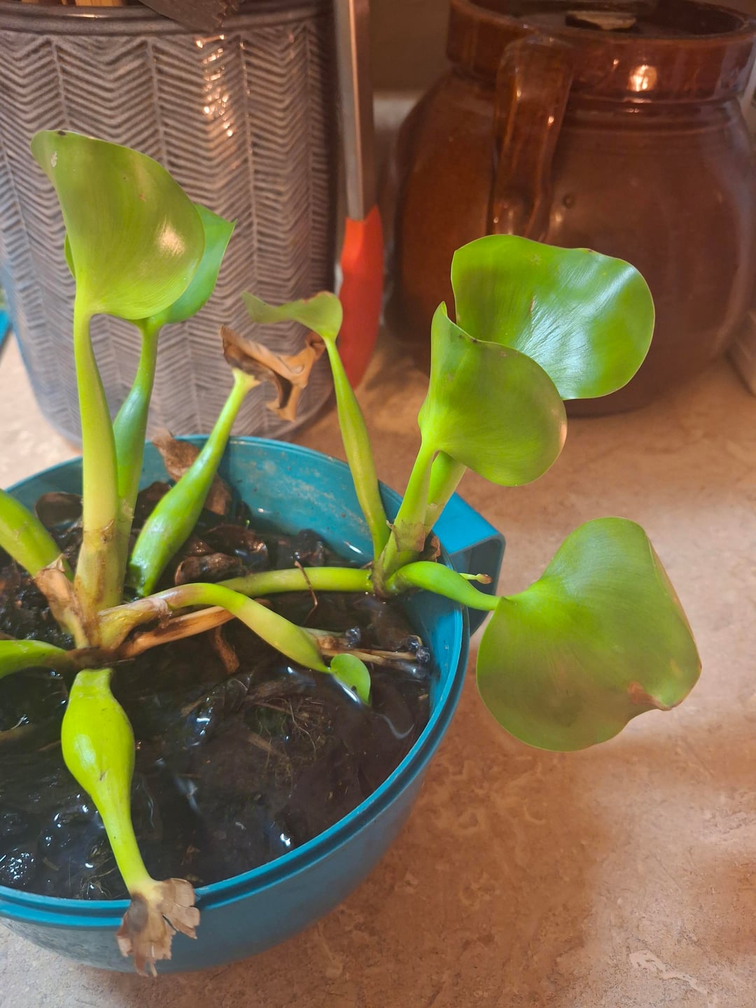 私の夫は、私が植物が好きだと彼が働いていた人に言った、そして彼は私のためにこれを家に持ってきた。彼女は、彼女が彼に与えたものは汚れであるにもかかわらず、それが水の中でより良く成長すると彼に言った。しかし、彼女は彼にそれが何であるかを伝えませんでした。 葉の直径は約1〜2インチで、かなり円形です。 何かアイデア?私はそれがそのまま生き残ることができないと感じていますが、私はそれを幸せにしたいです。 ありがとう!