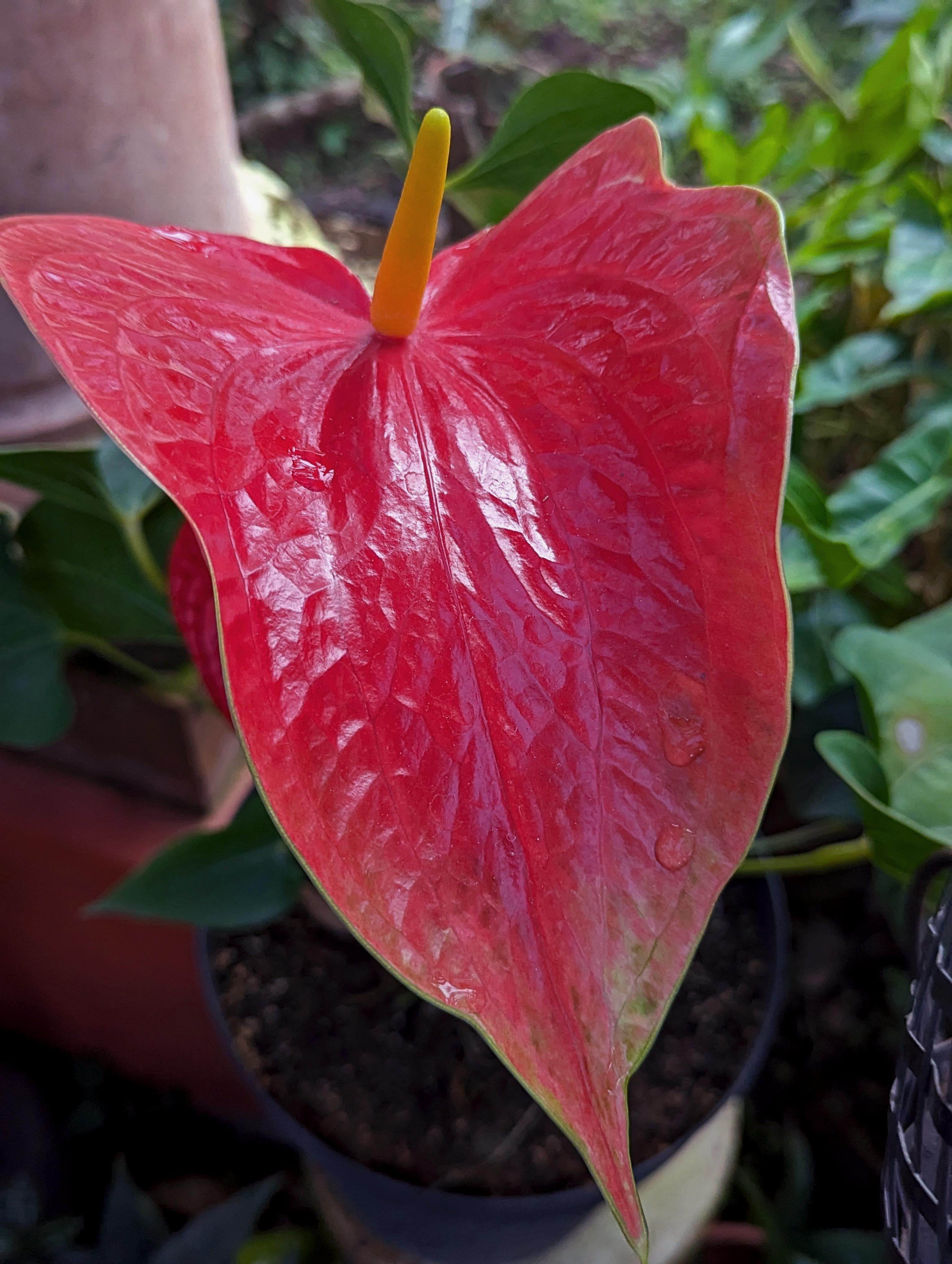 ❤️💛黄色のスパディックスを備えた非常に光沢のある赤いanthurium andraeanum→