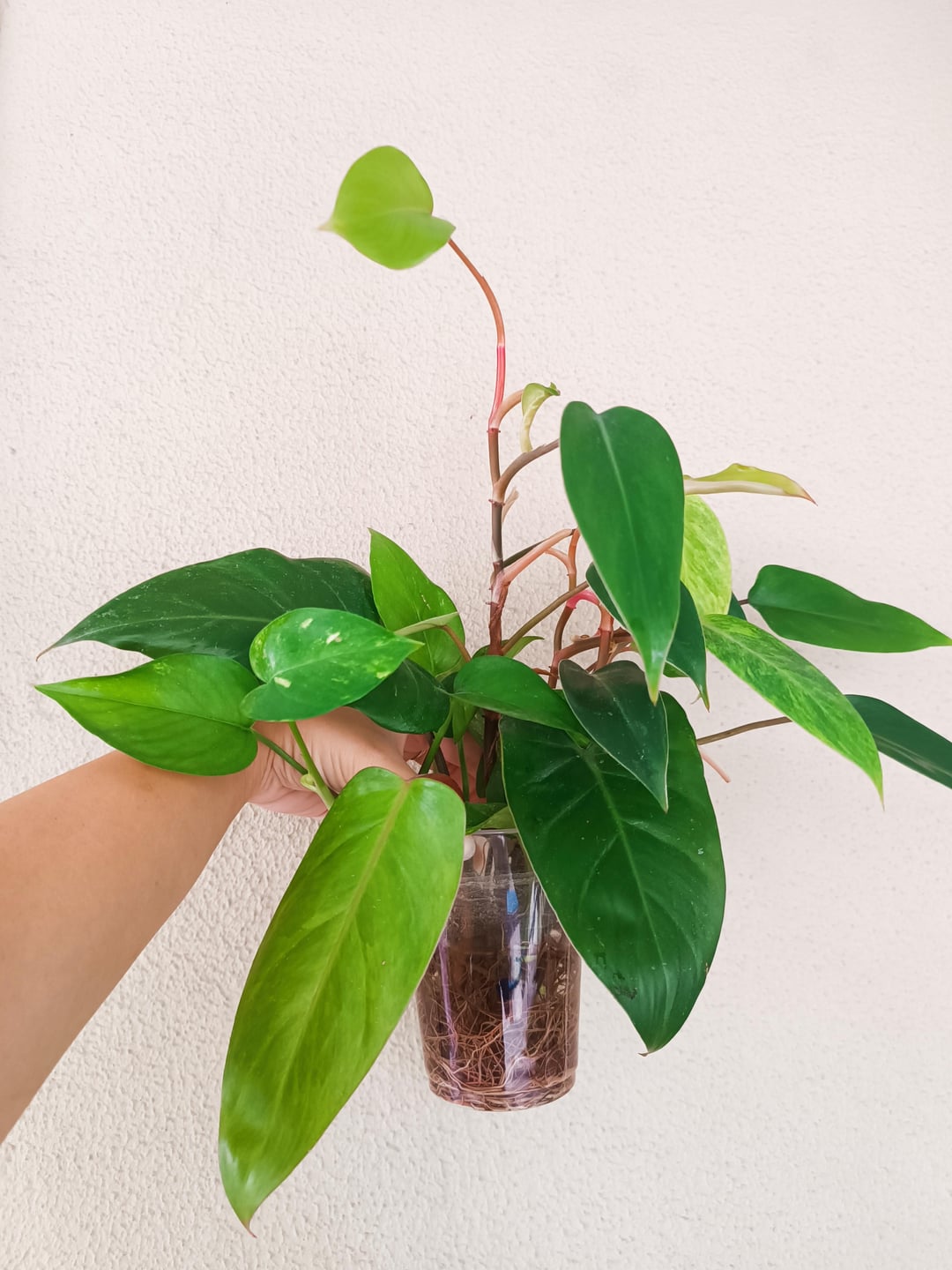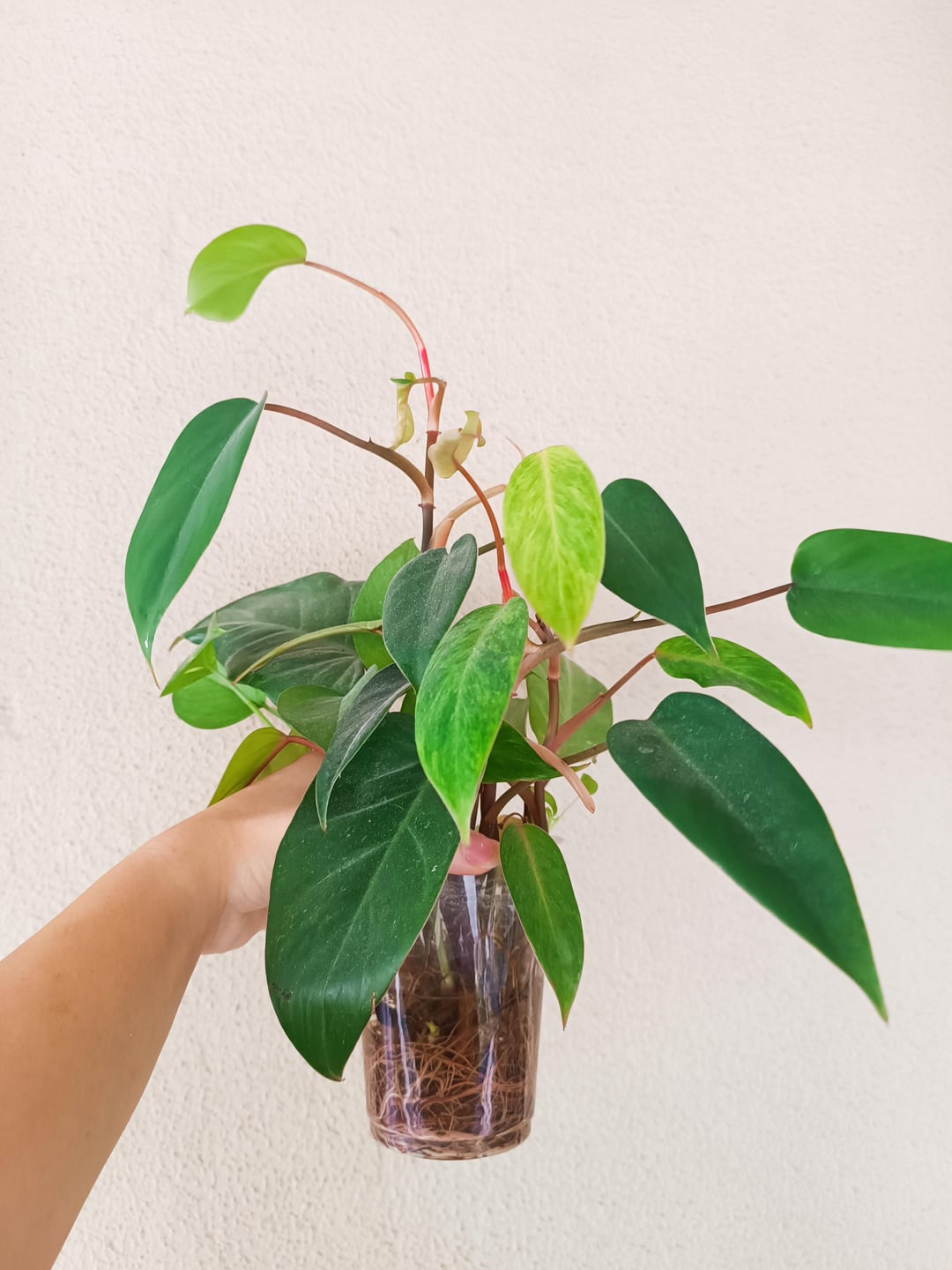これらの写真で成長している種は、黄金のポトスとフィロデンドロンの赤いエメラルドと塗装された女性です。