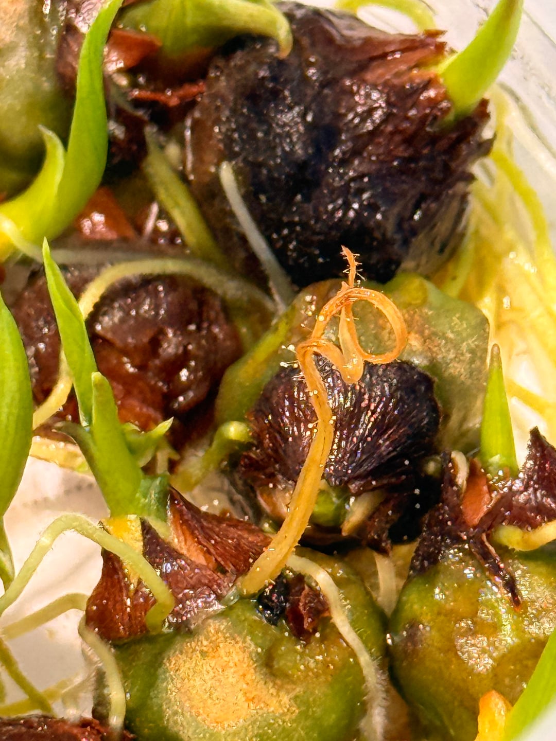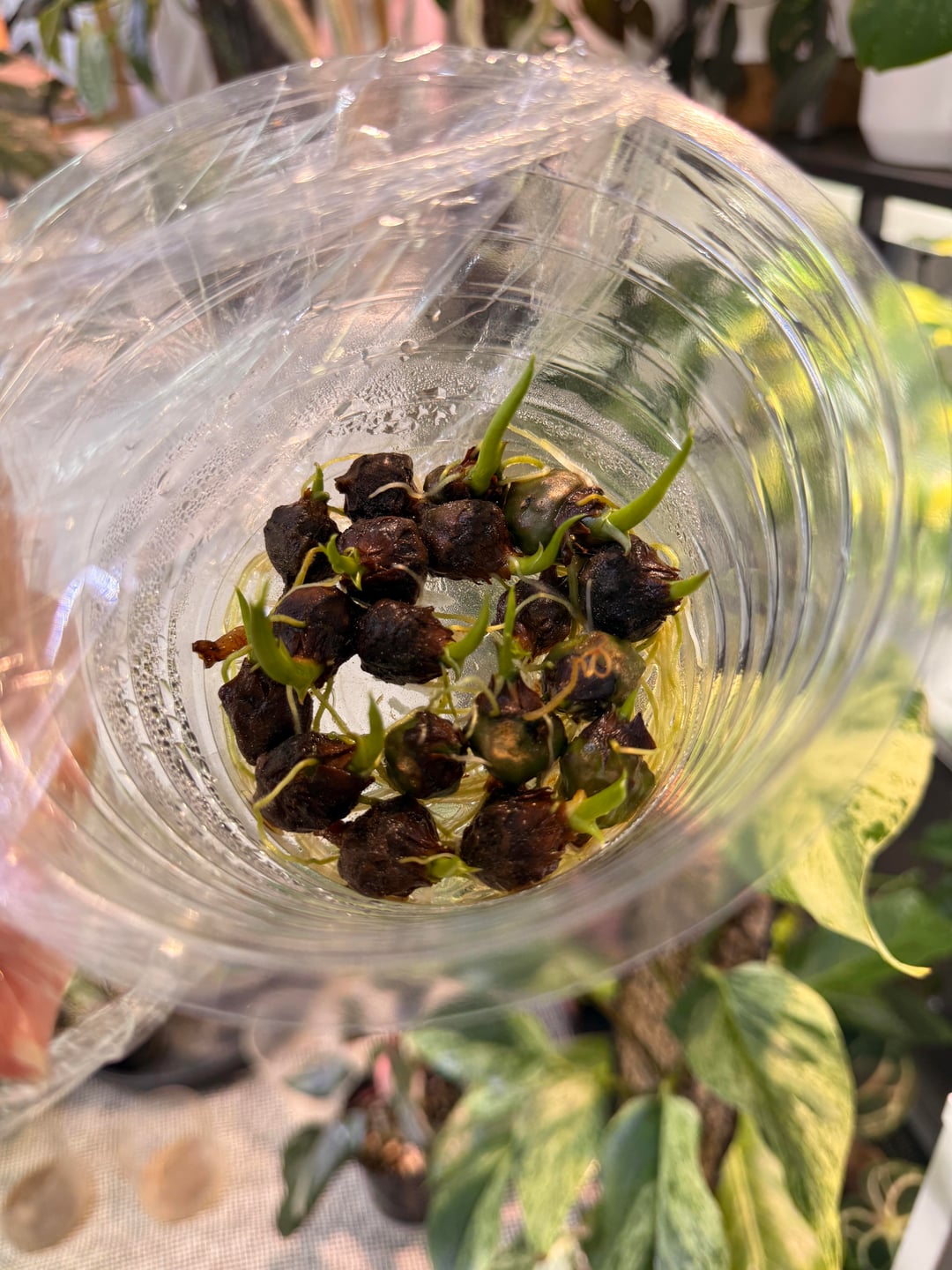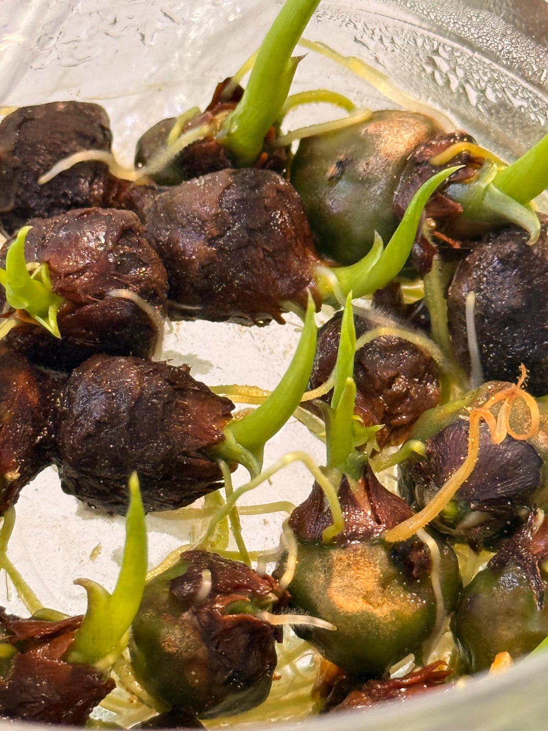 水たまりの方法では、いくつかの緑色のフライデックのコームが本当によく成長しています。これを試したことはありませんが、私はこれまでのところ結果に非常に満足しています。しかし、これらの小さな胞子のような成長はそれらの上にあります。これらの卵やバグは何らかの種類ですか?またはこれは正常ですか?