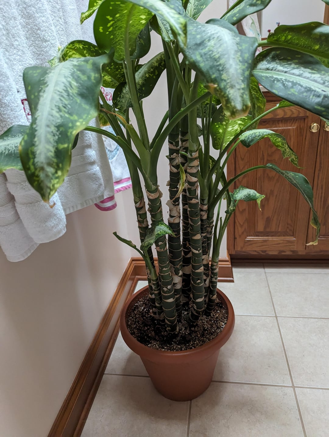 私はこの植物を譲り受けましたが、ダニによる被害やダニの再発がありました。 決して繁栄したわけではありません。 黄色いチップがたくさん。 しかし、新しい芽もたくさん出てきました。 もう何年も植え替えをしていません。 植え替えをして、茎をすべて切り落として、まともな上部を支柱で支えようか検討中です。 これは賢明ですか? どこまで切るの? それに、ここの毒素も怖いのですが…それだけの価値はありますか?