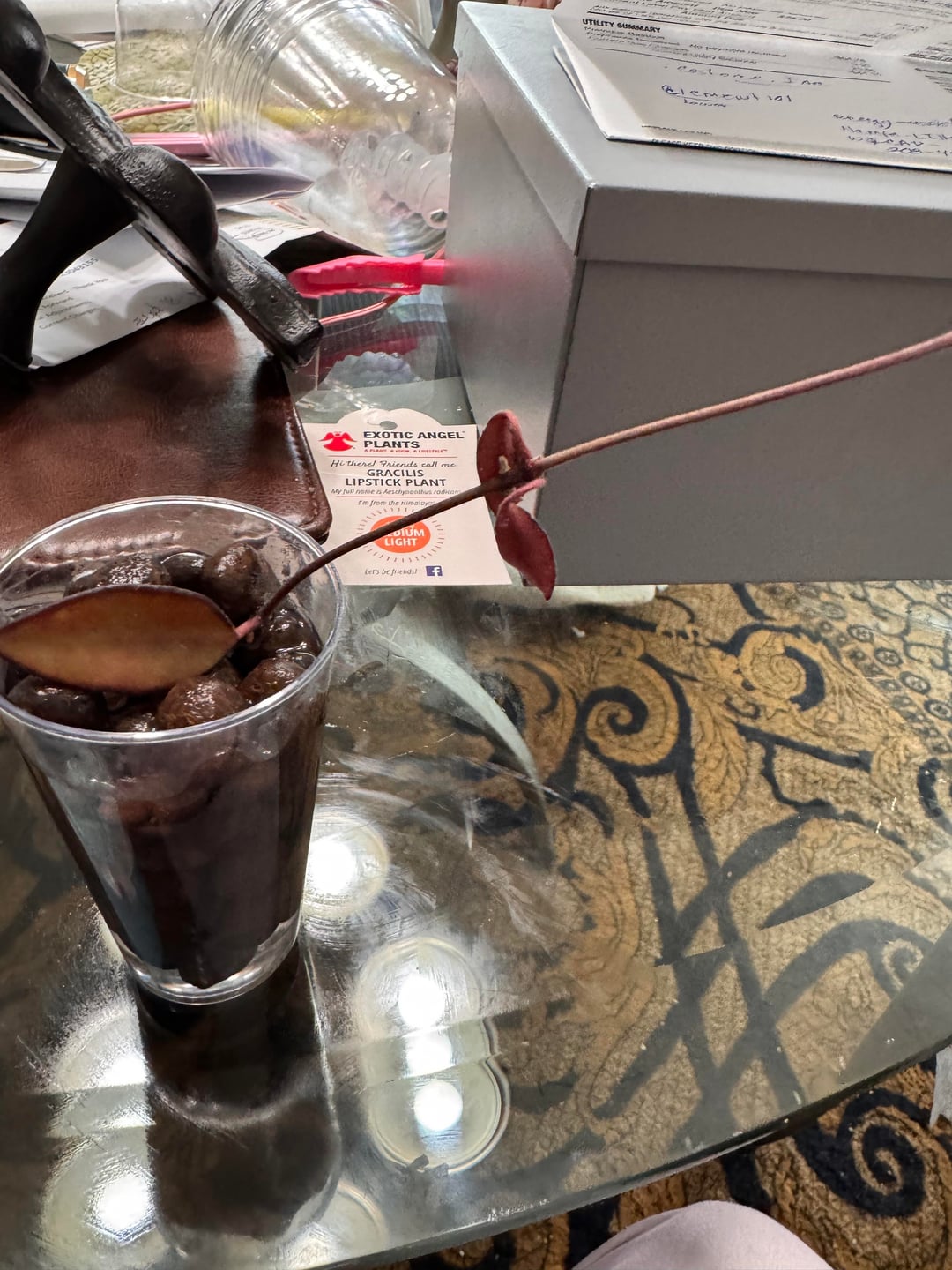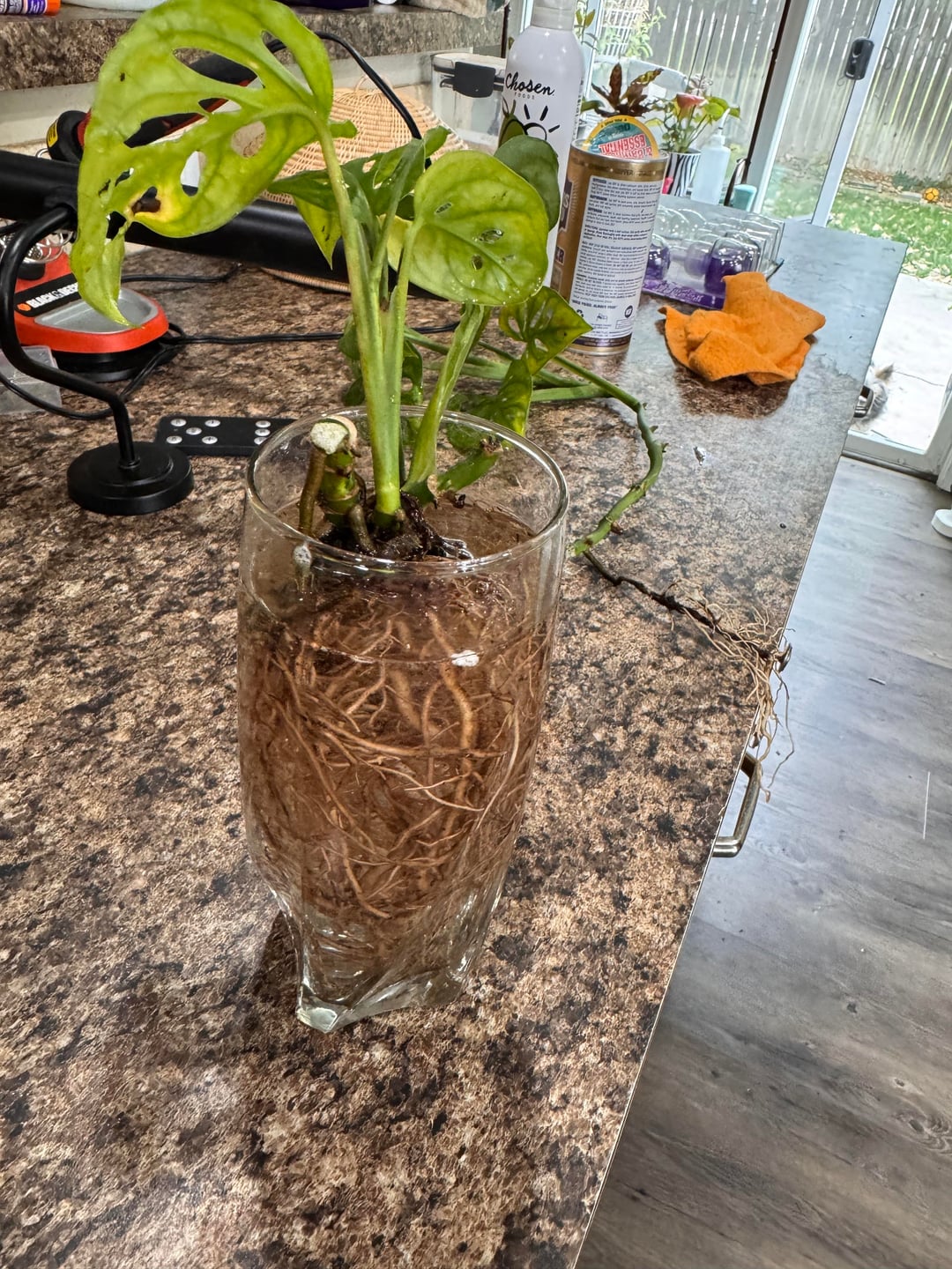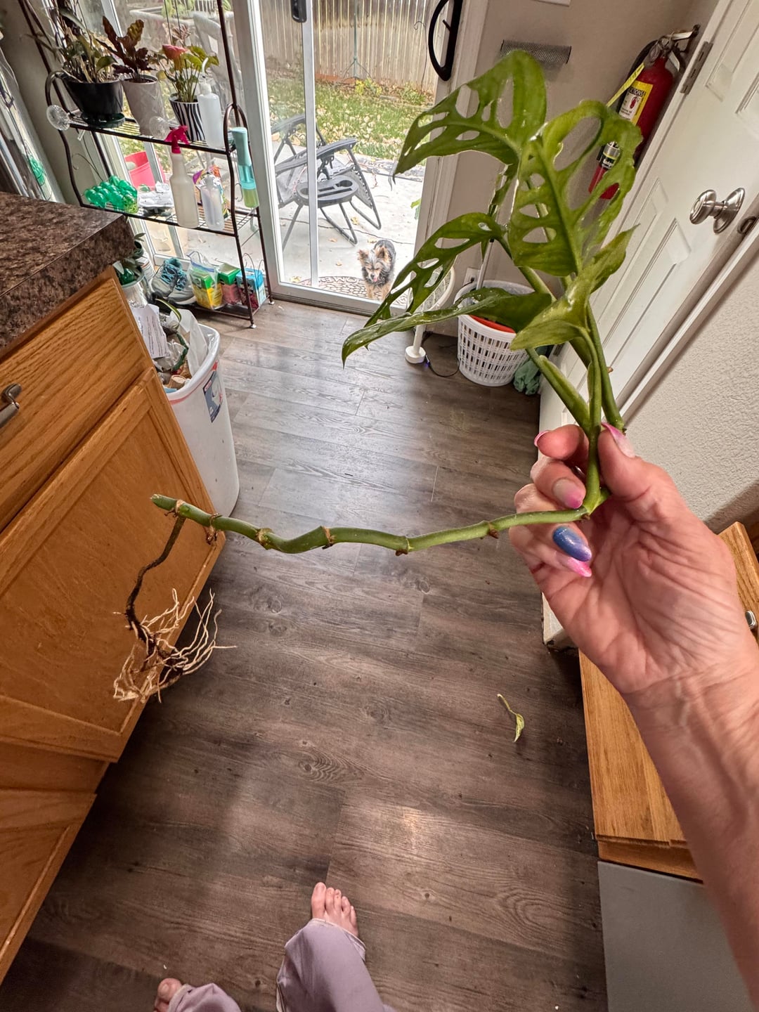 私は私の近くの大規模な地元の農場店にいて、今まで見たことのない大人を見ました。私はそれを拾ってそれを見て、長いブドウが壊れました。誰かがランナーの上に非常に重い植物を置いていました。私はこのエリアを走っている女性に行きました。私はカートに他の2つの植物と、土壌、パーライト、レカ、そして私の犬を持っていました。彼女は微笑んで言った、「もちろん、それはただそこで一人で渇いた。幸せなリハビリ」。それから彼女は私を別のテーブルに連れて行って、これらは基本的にすべてが割引テーブルに入っているので、私のピックを持っていると言いました。