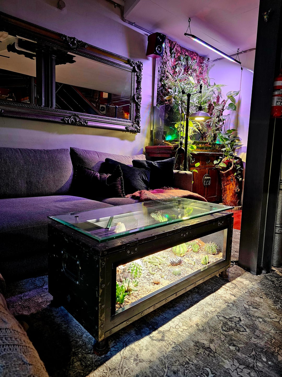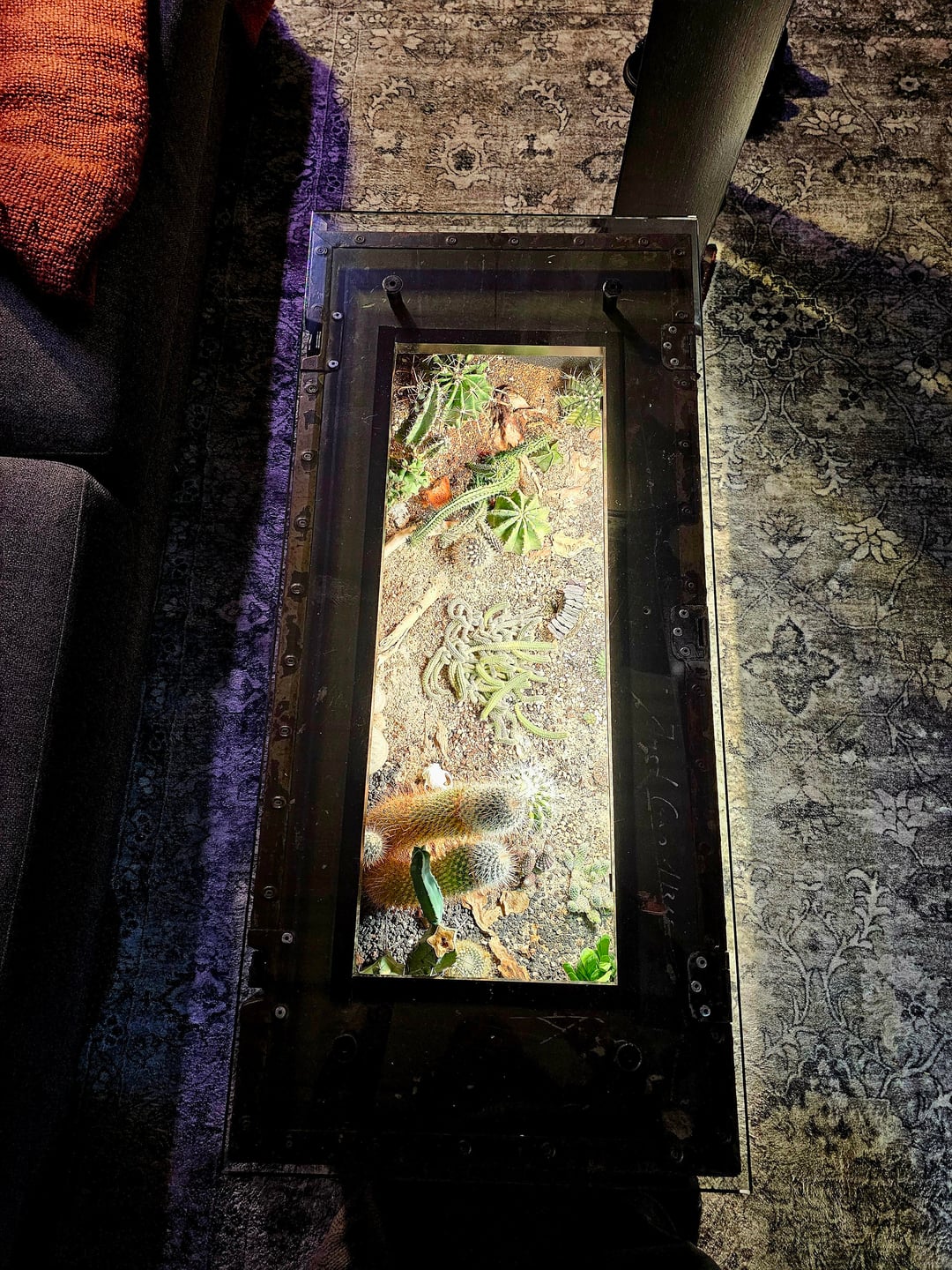 数年前に作ったサボテンのコーヒーテーブルを共有していると思いました。古いWW2弾薬箱で作られているので、フロントとトップアウトし、スーツを作るために作られた12mmの強化ガラスを手に入れ、防水され、自動タイマーにセットアップし、さまざまなサボテンで埋めました。