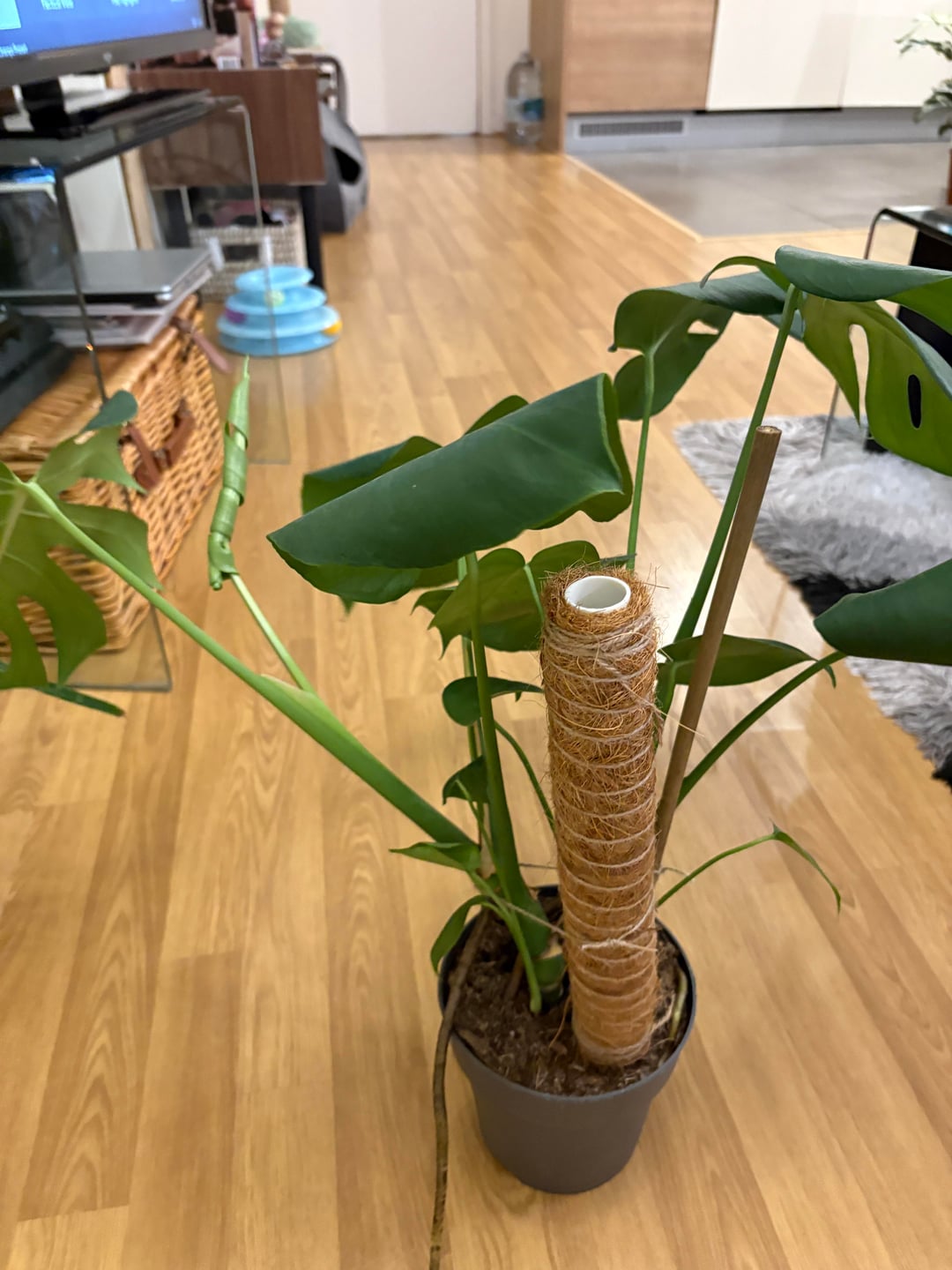 こんにちは、私はこの怪物をまっすぐに成長させるのに苦労しています、どうやってそれを結びつけるべきですか?私はライブモスポールを持っていることには興味がありませんが、植物を塗り替えたら木製の板を置くかもしれません。
