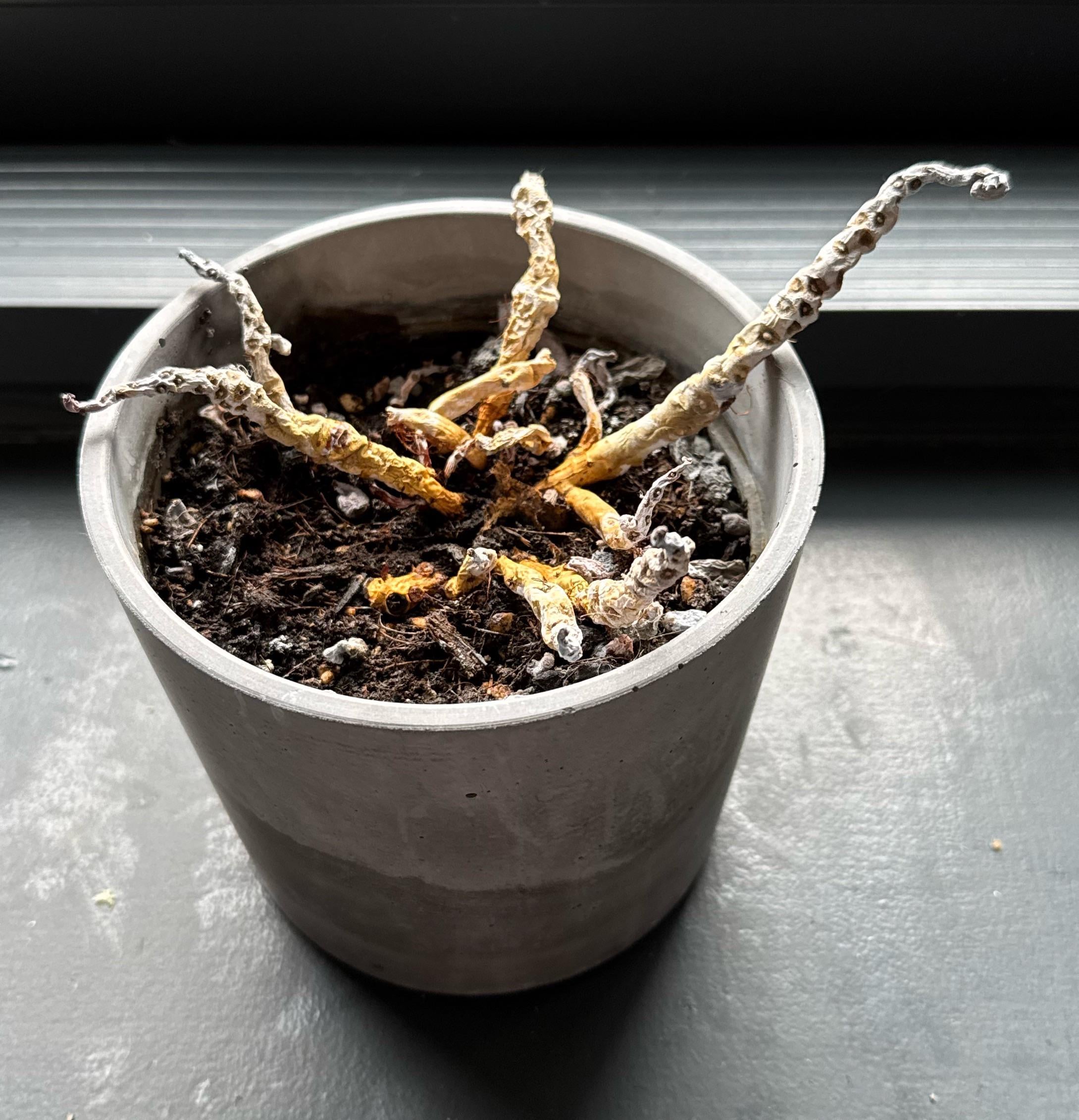 これは実際に彼女が去った日にこのように見えました、そして、私は多分それが死にかけていると思いました。その後、私はそれに水をやりましたが、それが私の大きな間違いだったと思います。