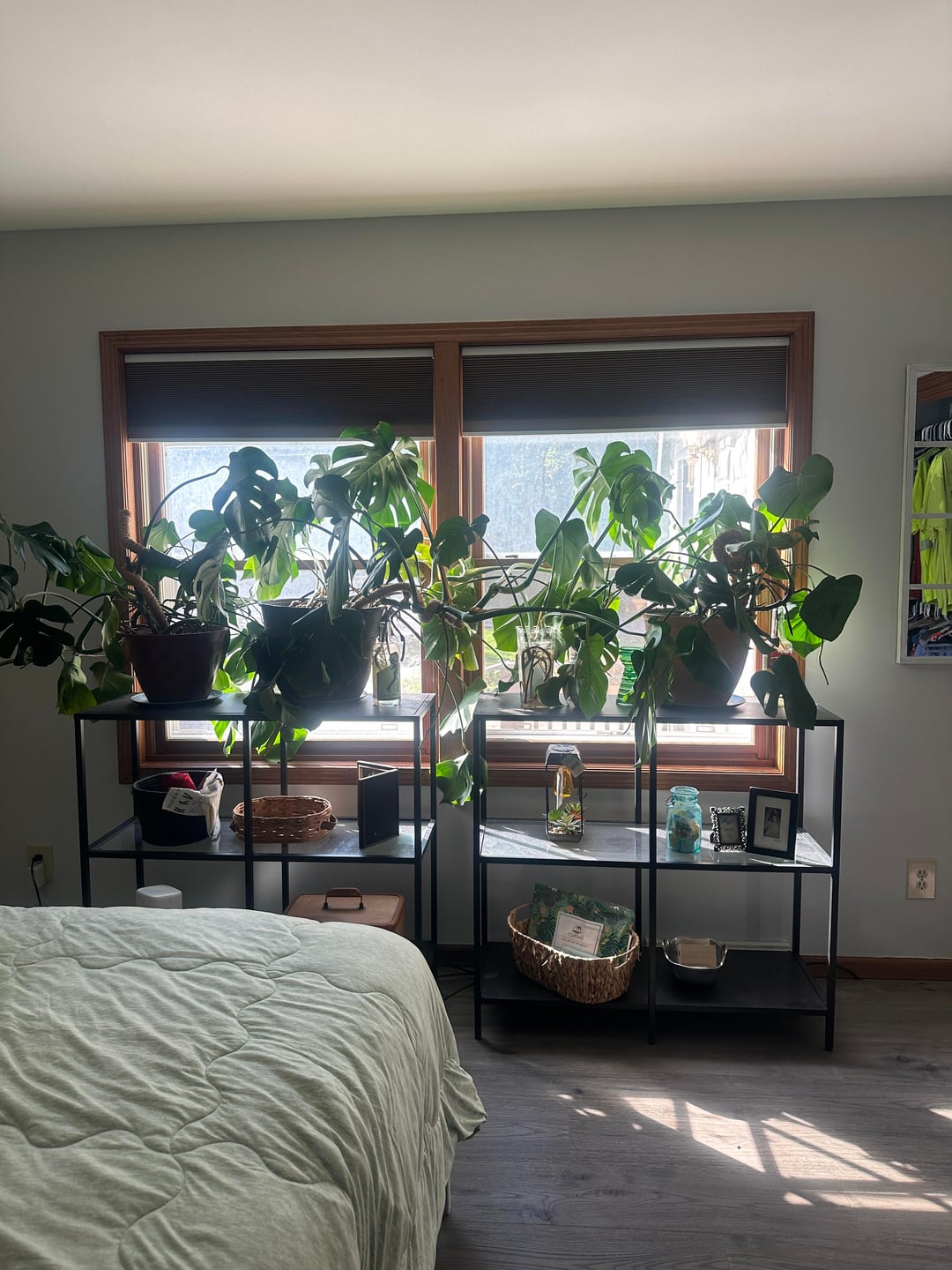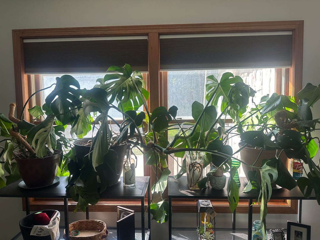 私は家の植物を持っていることを崇拝しますが、私はしばしばそれぞれに十分な光の露出を与えていることを確認するために再配置します。簡単に散水するためにそれらをすべて近くにしたいと思っていますが、リビングルームに大きな窓しかなく、寝室の二重の窓が配置されています。私は植物をかじるのが好きな犬を飼っているので、床に鍋を置くことはできません。軽いアクセスと家庭の美学の両方のために、それぞれをどこに置くべきかについてのアドバイスはありますか?