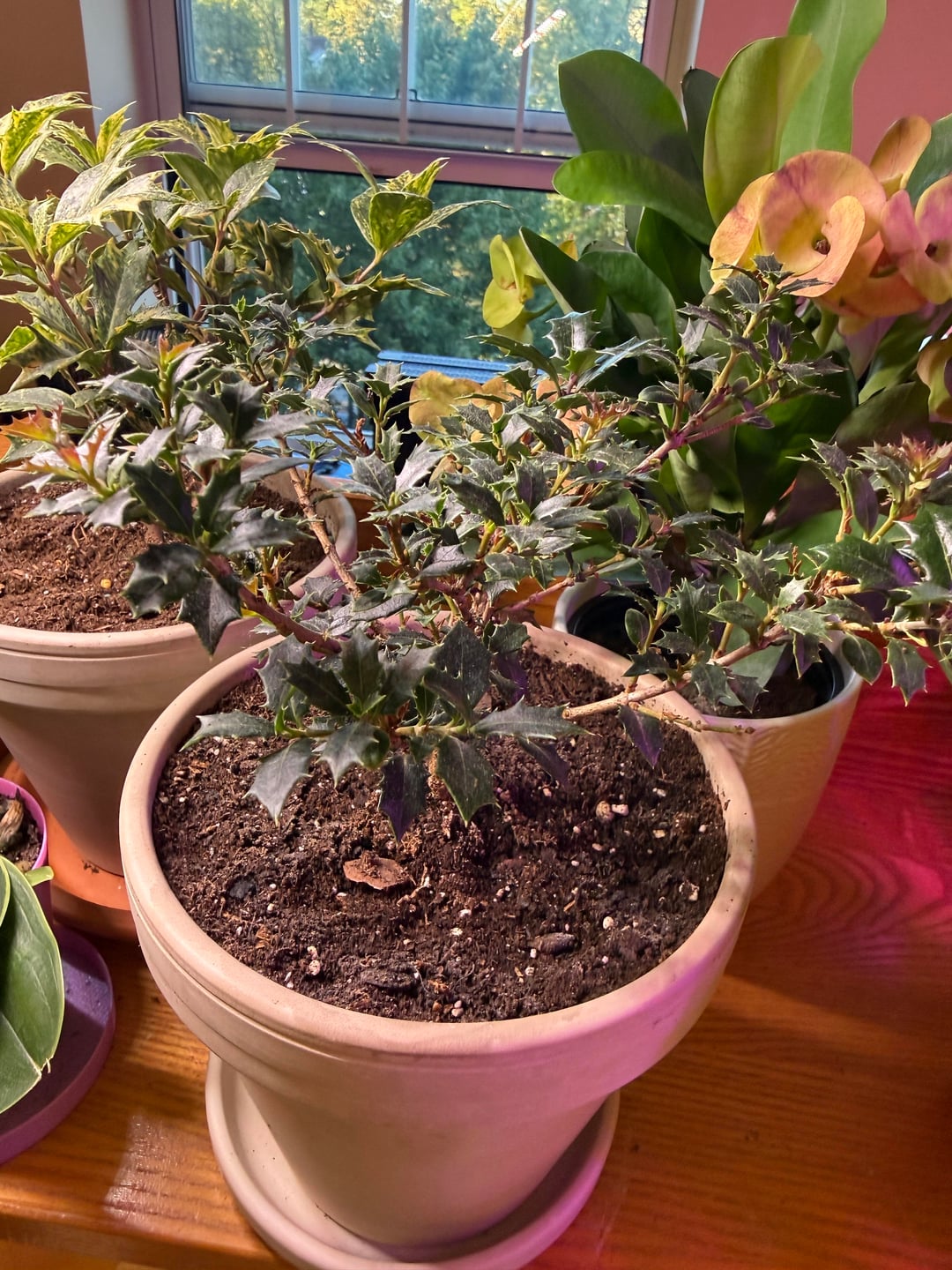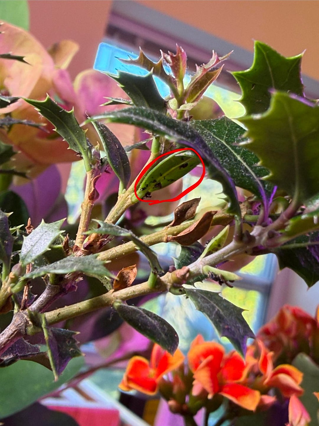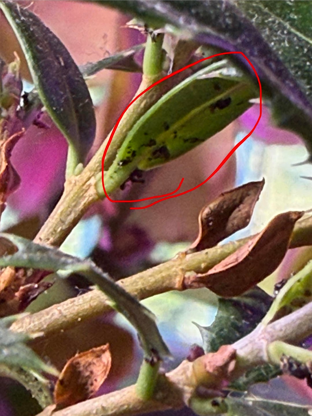 これは、ドワーフ・カオリ・ヒメ栽培品種のosmanthus heterophyllus植物です。最近、私はこの黒いが葉の下側にあることに気付きました。鍋は数週間前に落ちたので、私はそれが土壌であるかもしれないと思ったが、それはあまりにも粘着性があり、土壌とは異なっているように見える。これは心配することですか? この植物は最近、かつてないほど良いことをしているので、私はそれが健康であることを確認したいと思います。