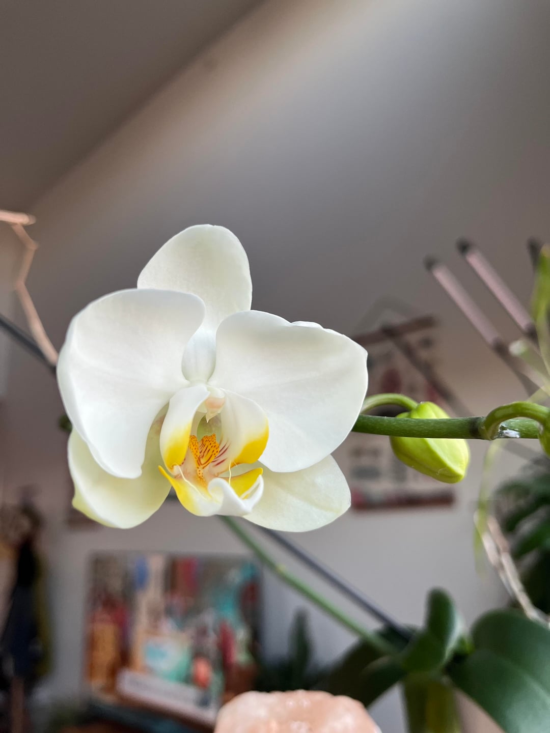私は今週末に町を出ていたので、とても心配していたので、私の女王が咲くのが恋しいのではないかと心配していましたが、彼女は家に帰るのを待っていました!!!私の蘭も今日も咲きました!!! ピンクと黄色のディテールを備えた白い花びらを備えた同じ配色であることが大好きです。 💖