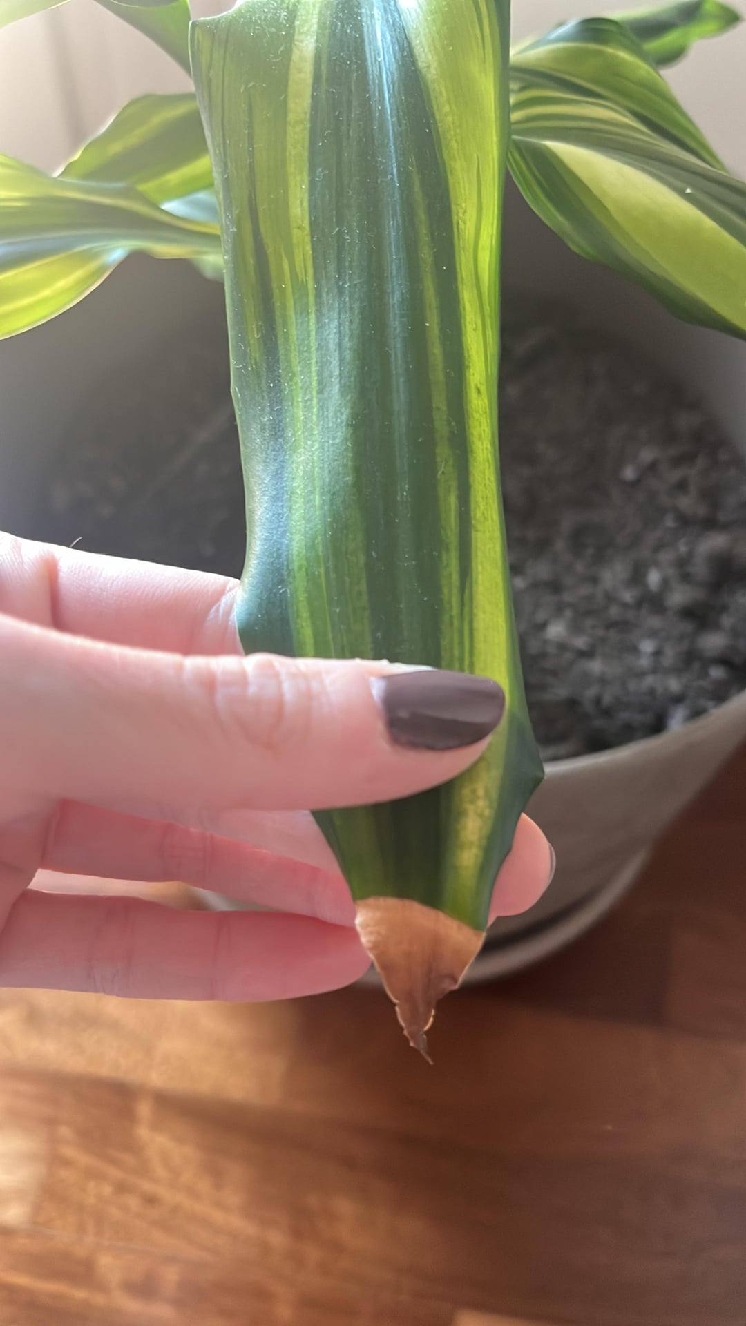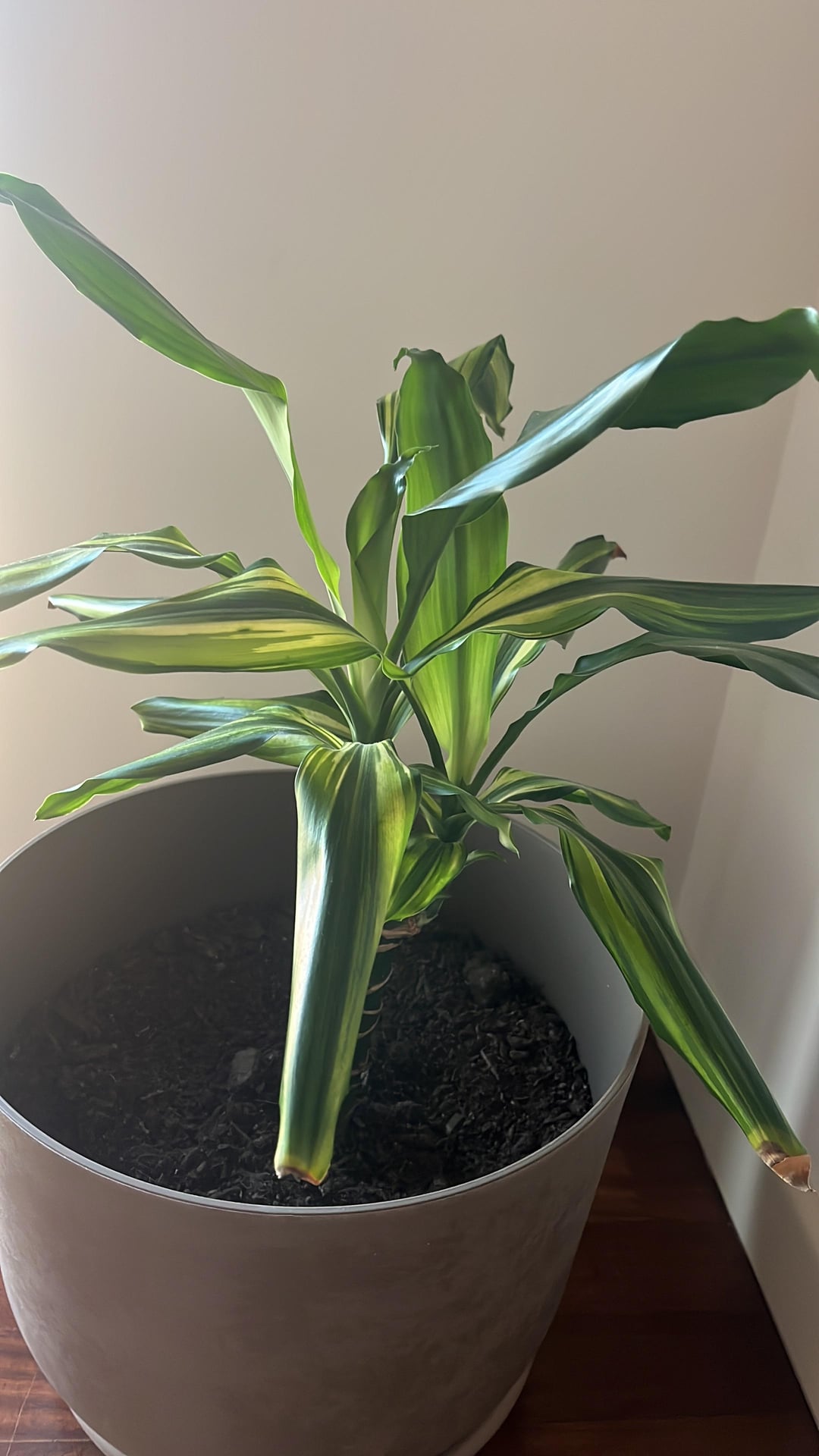 やあみんな!私のドラカエナは、葉の先端に茶色の斑点を持ち始めました(すべてではありません)。私は何が間違っているのですか?彼はかなりうまくやっているようです。