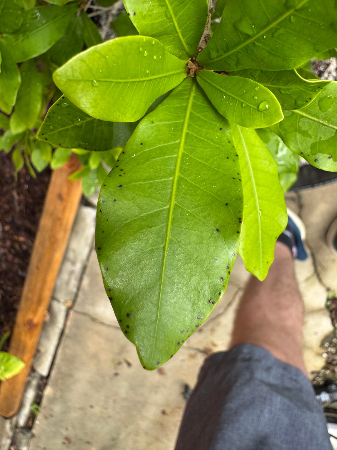 葉の縁に黒い斑点があり、成長中の新葉は紫色になってきています。これは真菌か何らかの感染症でしょうか、それとも別の何かでしょうか?