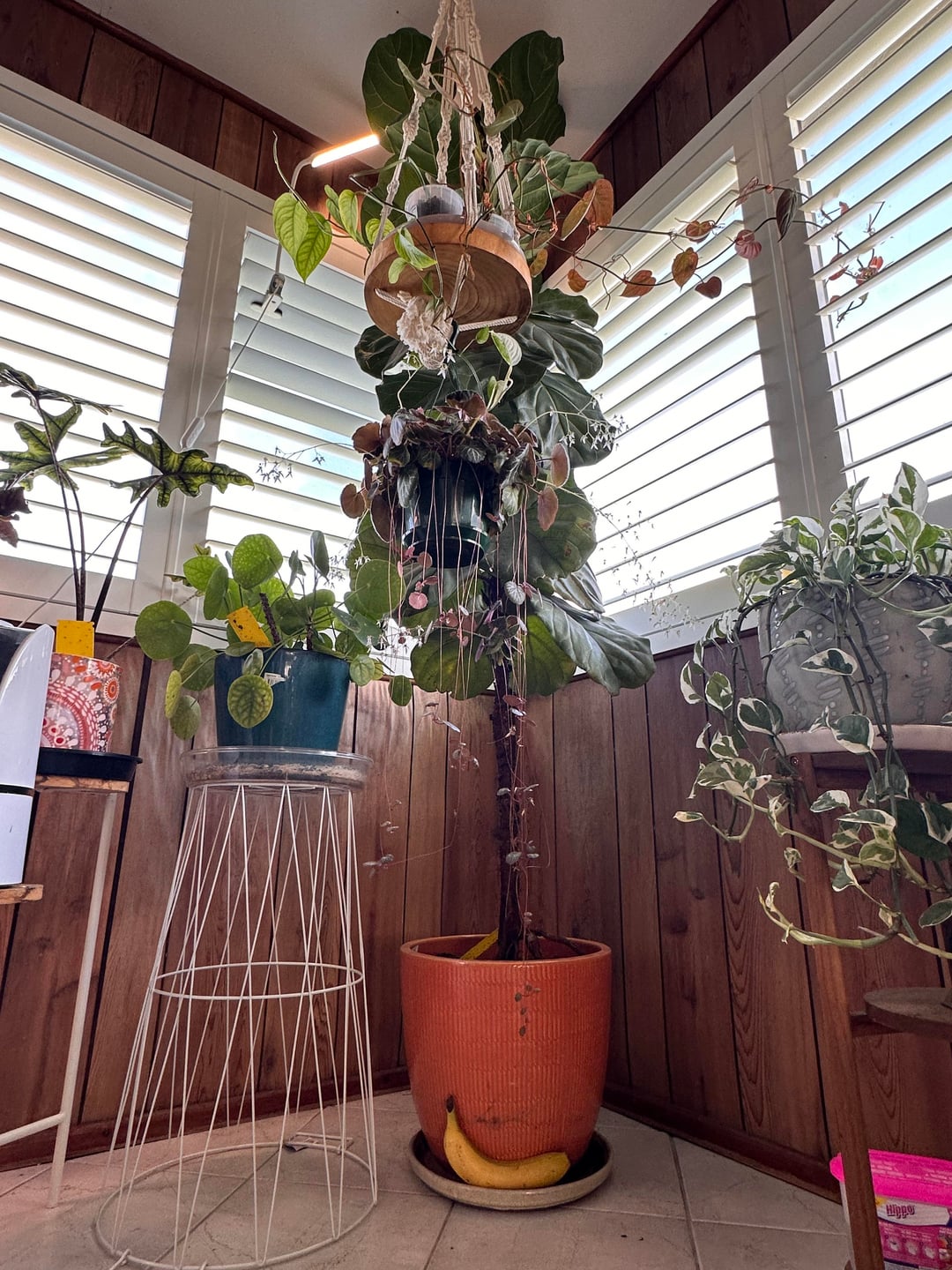 写真には写っていませんが、私のもう一つのフィドル リーフ イチジクは、幹が非常に細くてサポートが必要です 😂 私のこのフィドルは、高さ 3 メートル弱 (9 フィート 10 インチ) で、上部に 3 本の枝があります (枝の成長を促進するために強く推奨される摘み方です)。私が最も誇りに思うのは、室内用のフィドルリーフイチジクの木としては幹が太いことです。本当に頑丈な幹を持つ共有物はあまり見かけない気がします。