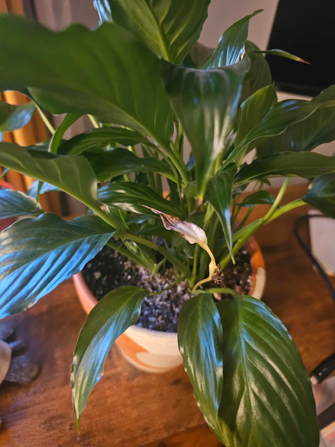 私はしばらくこの平和のユリを持っていました。いくつかの褐色化のヒントを除けば、植物はかなり健康そうに見えますが、私が抱えている問題は、仏炎苞(そう呼ばれていると思います)が出てくるたびに、成熟する機会さえ得る前に茶色くなり、枯れてしまうということです。しおれ始めたり、土が乾いたと感じたら水をやります。他に何が問題になるでしょうか?