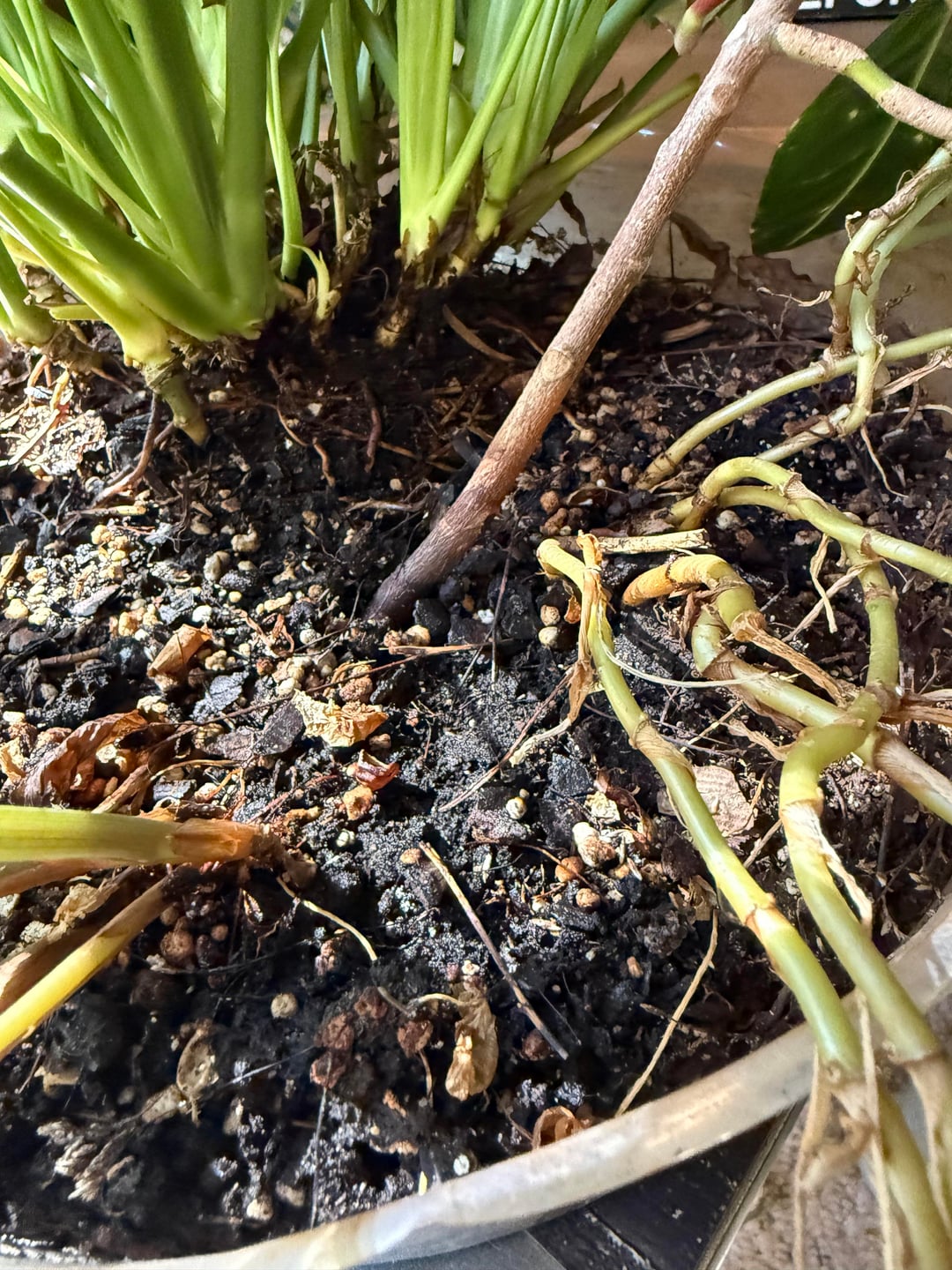 昨日、母が私に、うまくいけば保存できるように植物の入ったかごをくれました。私が名前を知っているのはピースユリだけです。水はけの良い場所に植え替える必要があります。それらも分けたほうがいいでしょうか?これらはほとんどが哀れに見えますが、ピースユリと斑入りの葉を持つもの(適切な光の下で赤くなると思います)はまだ繁栄しているようです。 苗床が一緒に送ってくれたので、明るい間接光が必要で、底面の水やりは大丈夫だと思います。遠慮なく修正してください!!!笑
