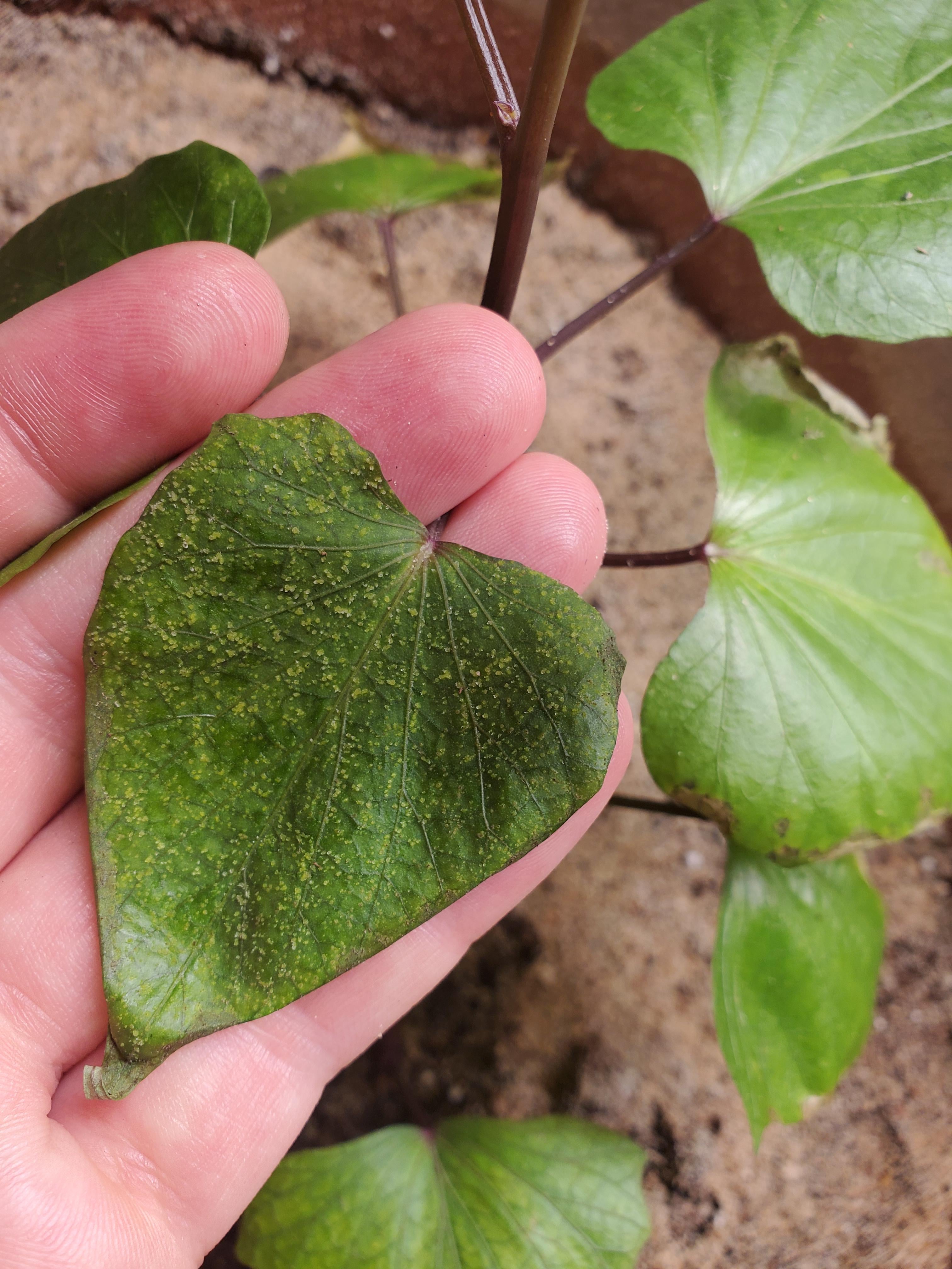 室内のサツマイモの葉には何が付いているのでしょうか?
