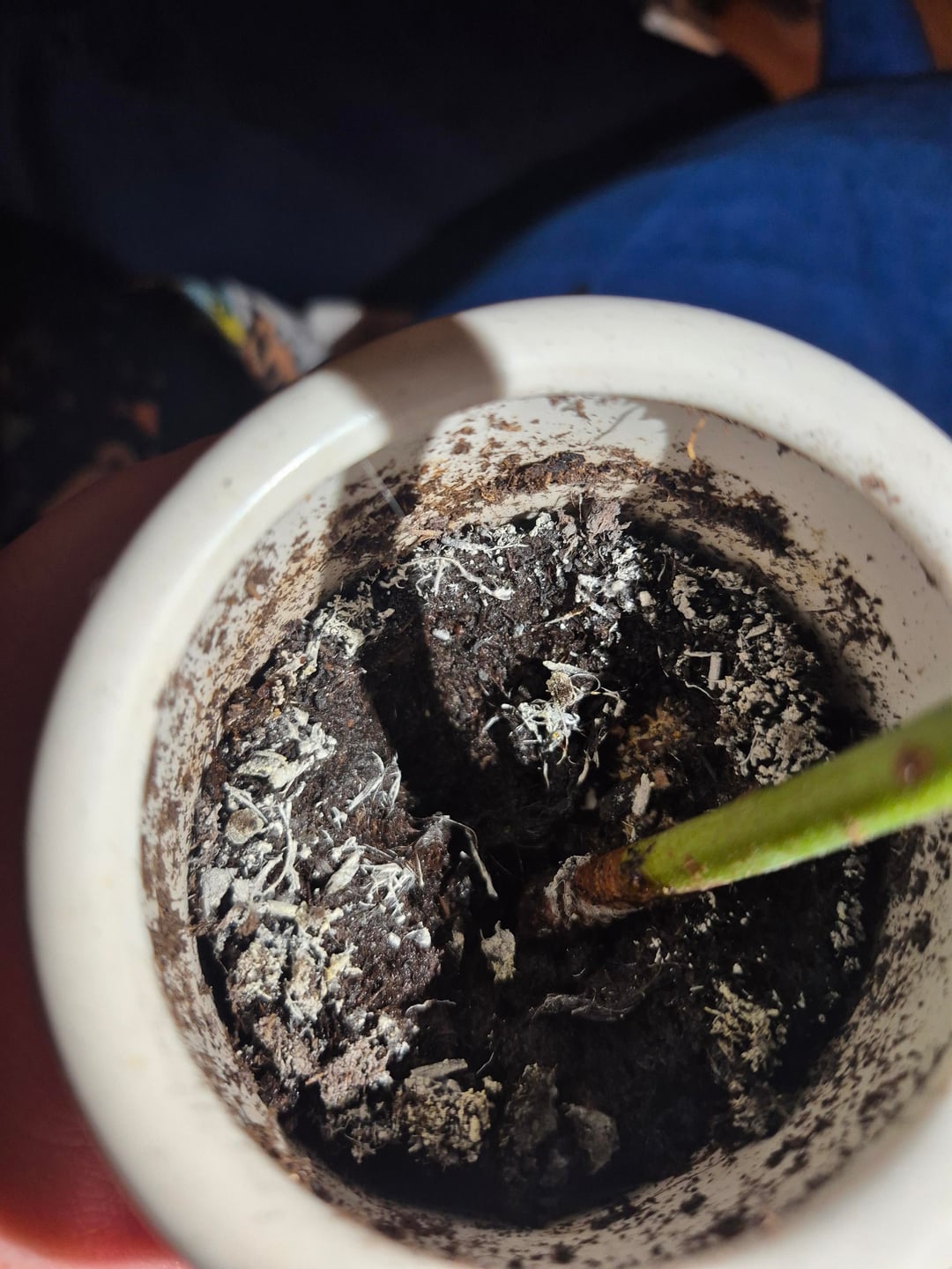 私は基本的にガーデニングについては何も知りませんが、今これを見て、もっと大きな鉢に植えたほうが良いことに気づきましたが、この植物は通常目の高さより高いので、鉢の中を見ることはあまりありません。上部にこの白いものが形成されていますが、それが何であるかわかりません。植物を枯らしたくないだけです😭助けていただければ幸いです