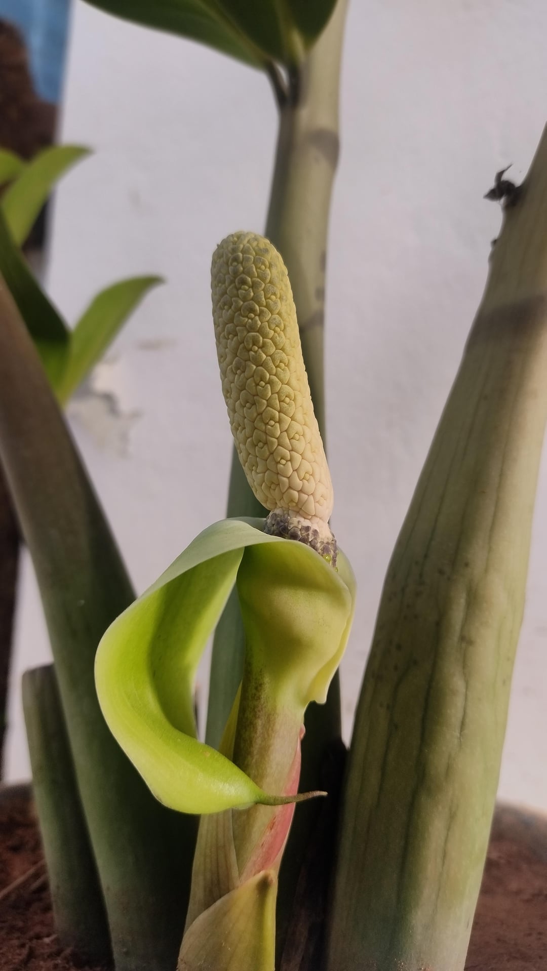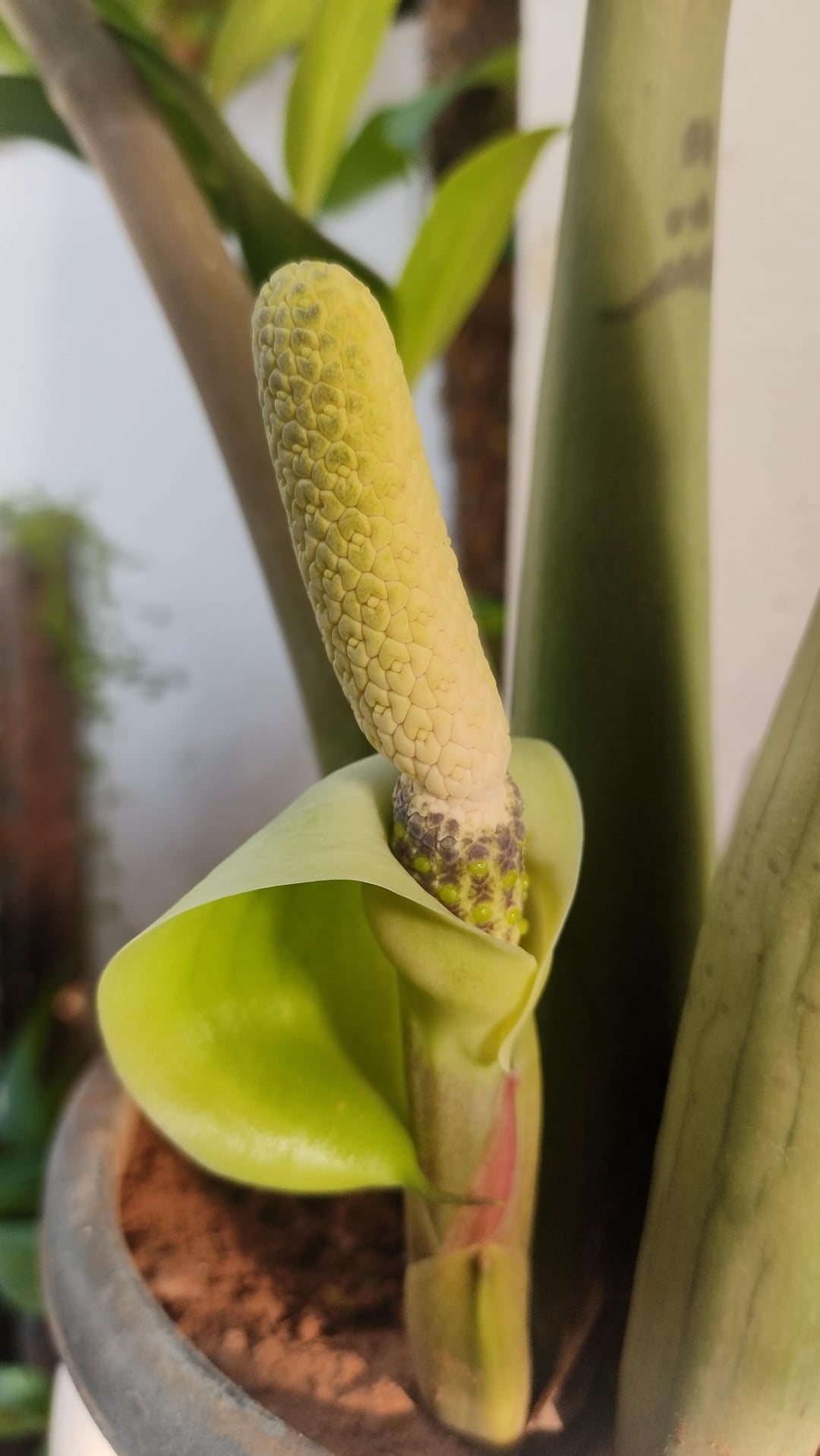 私のzzの植物の花は、胸を張って頭を高く上げ、高い帽子とスタイリッシュな緑色のスーツを着たアニメキャラクターのように見えます。
