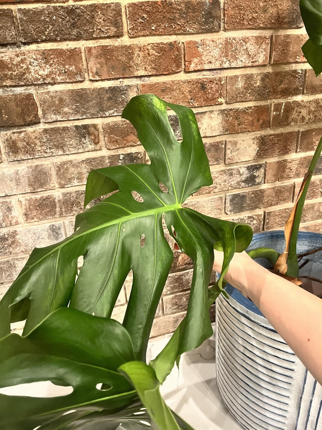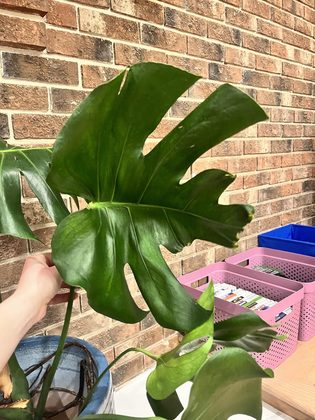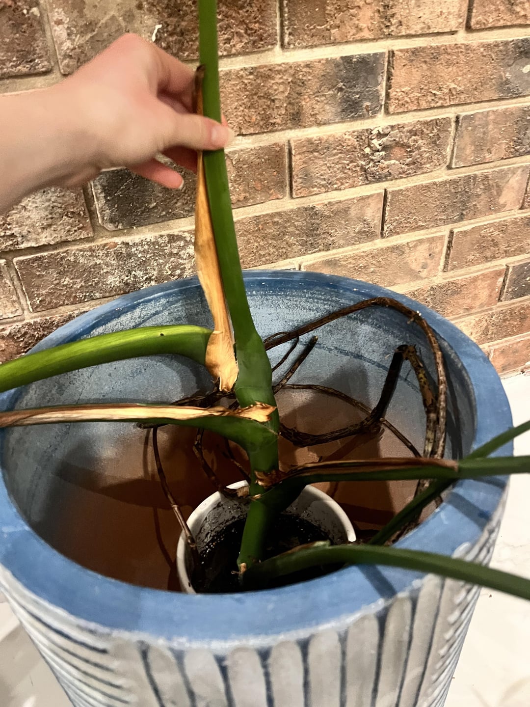先日、巨大なモンステラを切り取って、茎の 1 つからこの部分を切り取りました (植物/鉢を傾けすぎていて、他の茎ほど健康ではありませんでした) これも繁殖させようとして、最終的には鉢植えにしました。 この切り込みが大きすぎると、一部が枯れたり、苦労したりする可能性があります。 分割したほうがいいでしょうか? 助けて(笑)