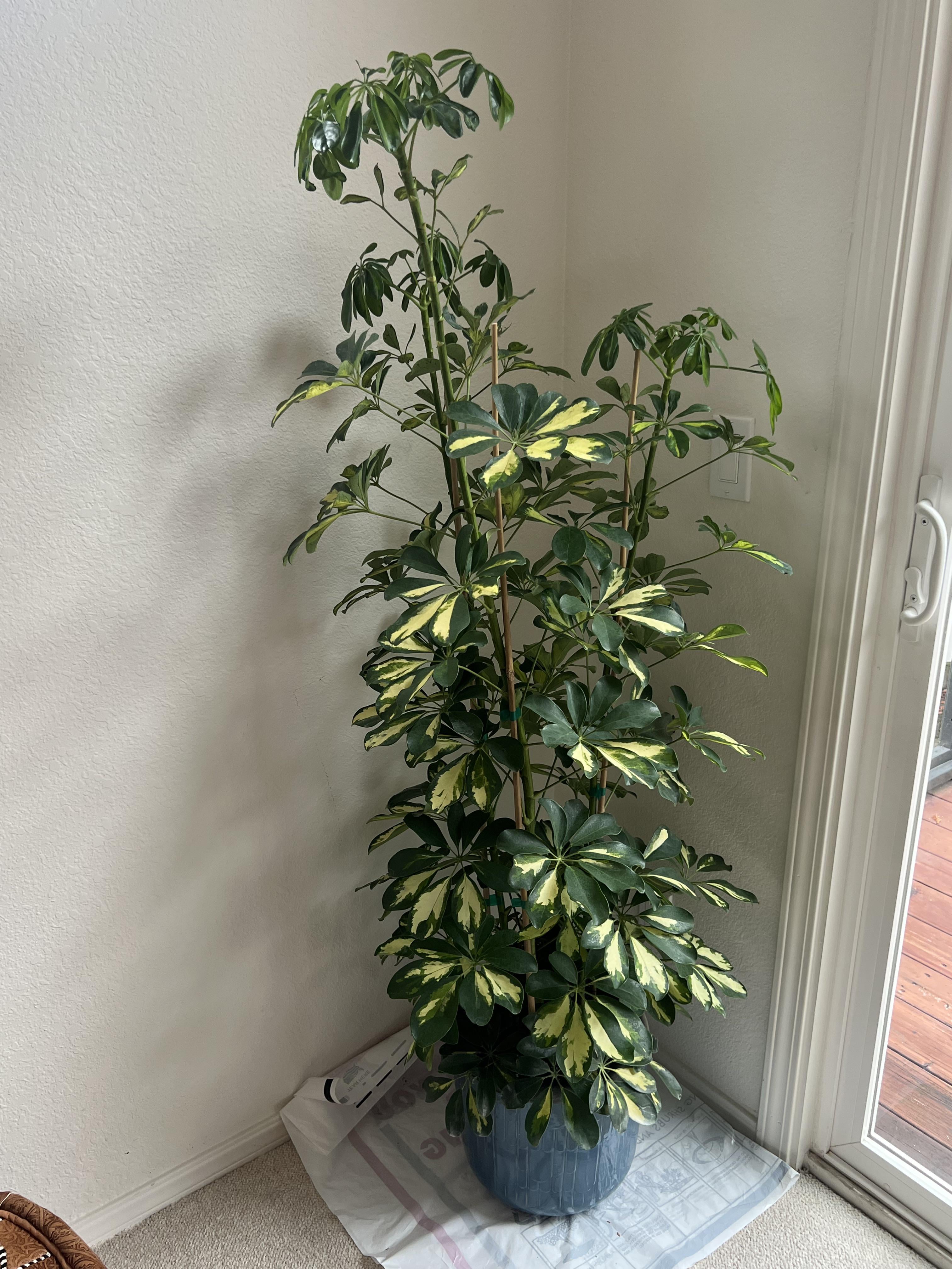 こんにちは。最近シェフレラを店から購入しました。鉢には3本の茎が入っていました。 下の葉はきれいに見えますが、上の新芽は垂れ下がっています。 なぜそうなるのか考えられますか? 1つのポットに3本の茎は多すぎるような気がしますか?分けたほうがいいでしょうか? ありがとう!