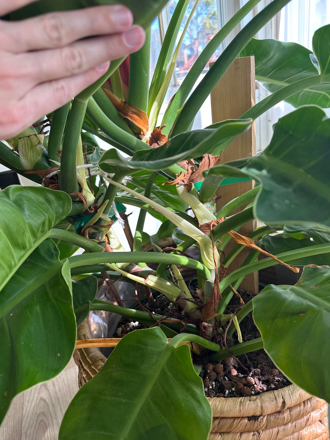 私の月光フィロデンドロンは大きくて大好きです!しかし、より長期的なサポートが必要です。何をお勧めしますか?今はステーキと小さな板で縛っているだけだ。主茎はとても長いのですが、とても曲がりくねっていて、小さな根が全体に沿って出ています。それをすべて削減するべきでしょうか、それとも大きな板を 1 枚追加するだけでよいでしょうか?うーん!