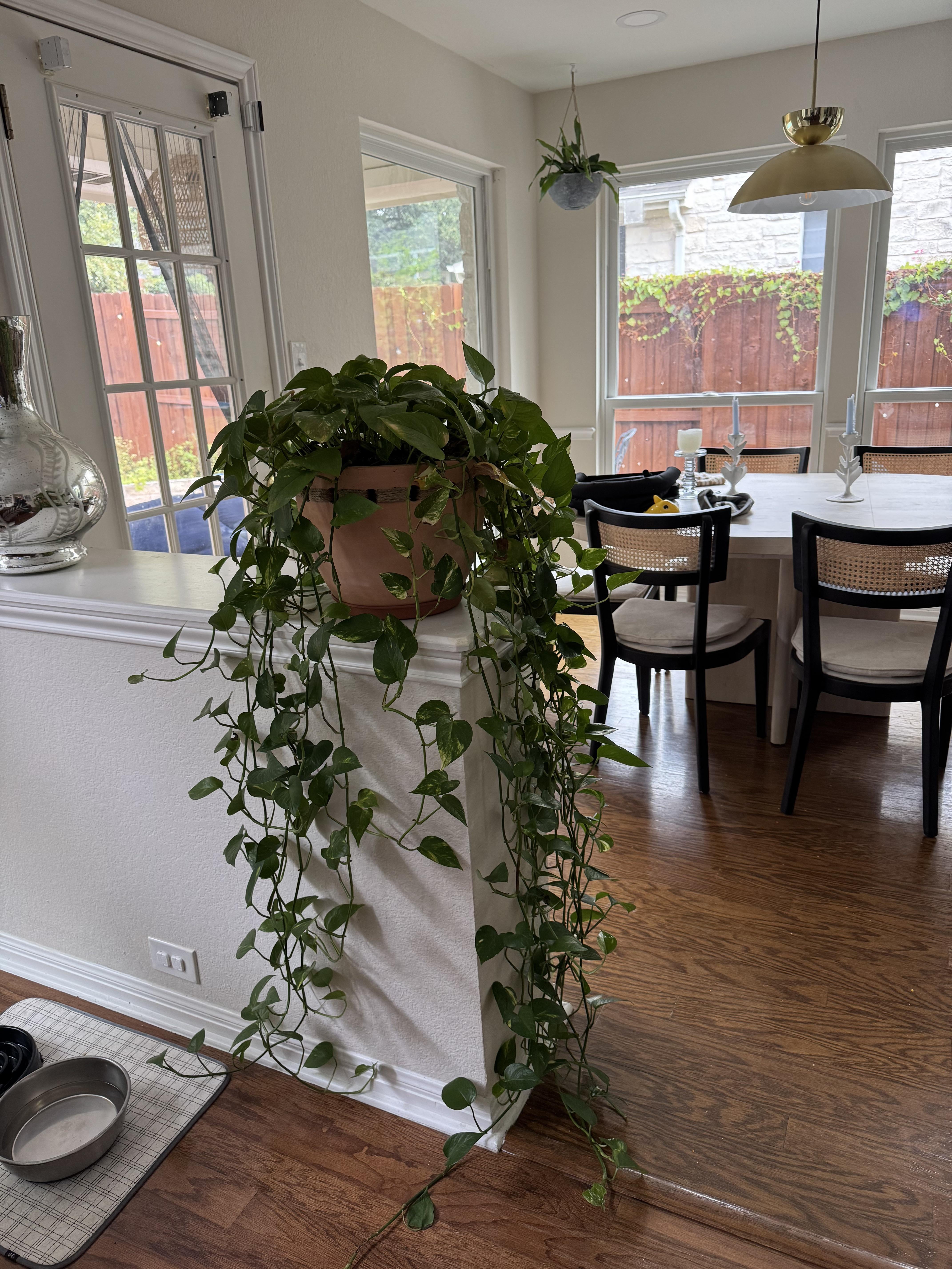 はいはいを始めた9か月の赤ちゃんがいて、この植物に興味を持っていて蔓を引っ張ろうとしているのですが、赤ちゃんが自分の上にある20〜30ポンドの植物を引っ張ってしまうのではないかと心配しています。 天井から吊るすべきですか、それとも床に置いたほうがいいですか?妻は重さと天井からの吊り下げを懸念しています。とても元気なので外には出したくないです。