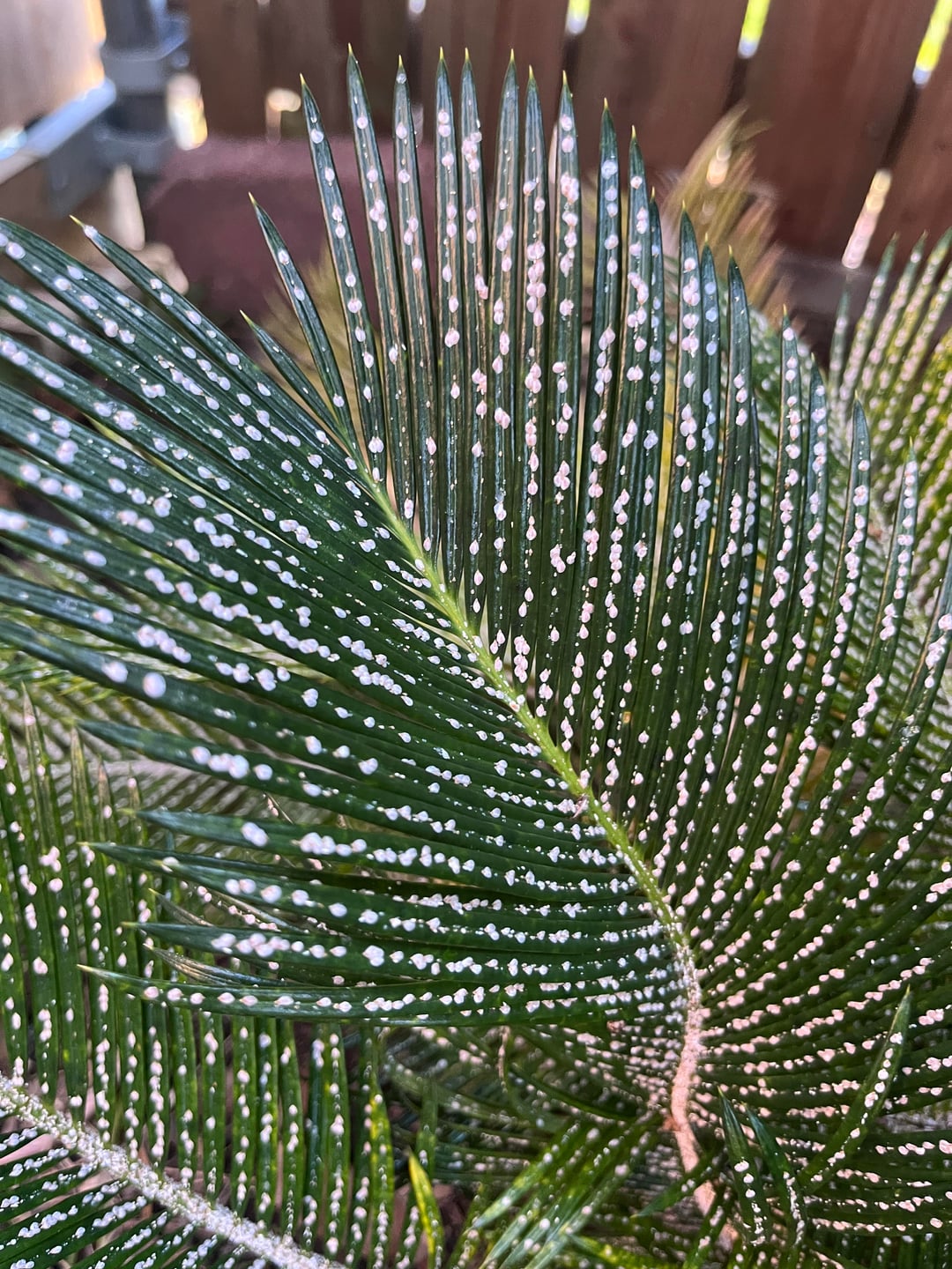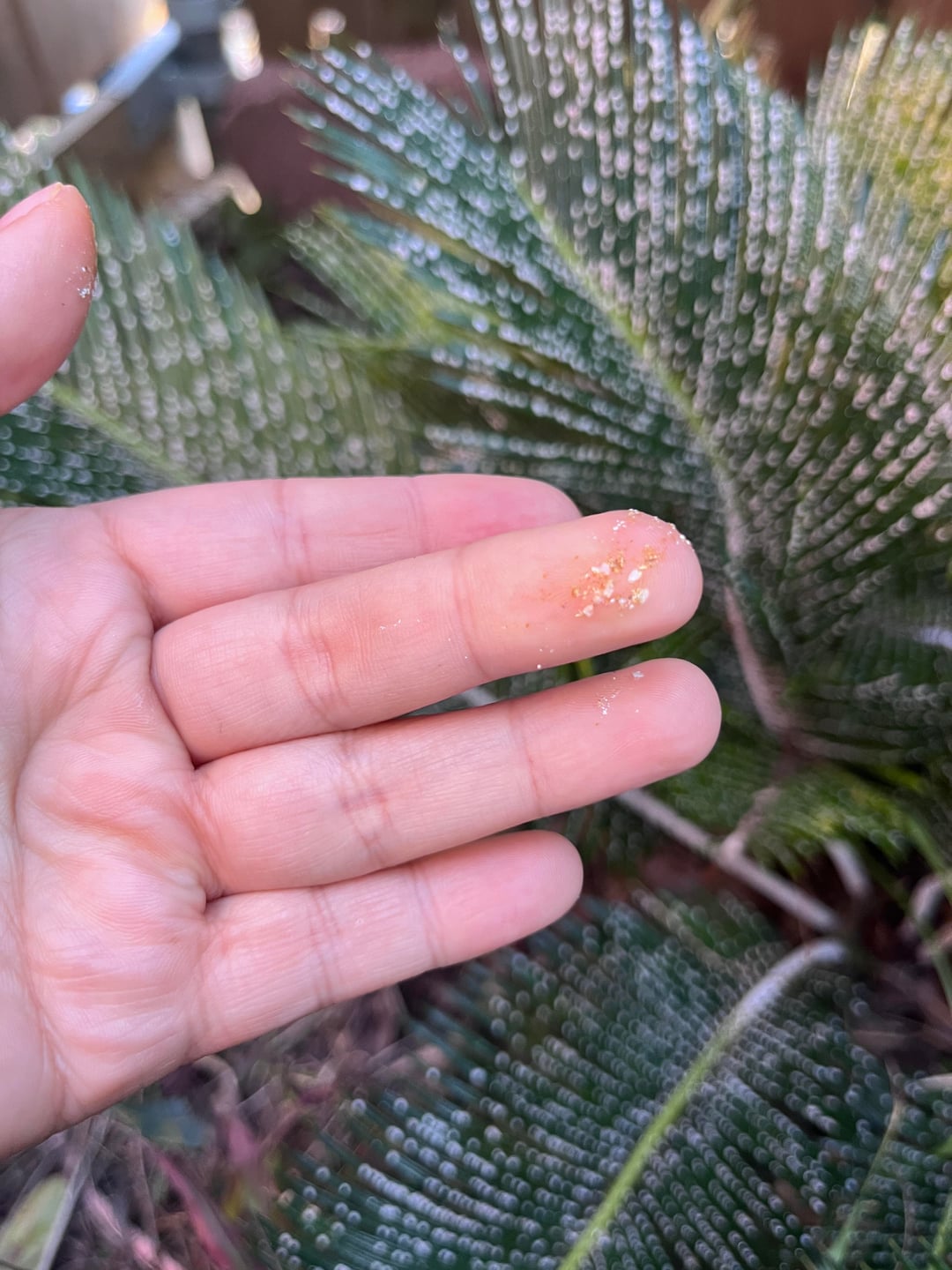 ヤシの木全体にこの白いものを見つけました。潰したときの様子を投稿しました。誰かがその中に何があるか、そしてそれと戦う方法を見つけるのを手伝ってくれますか?テキサス州ヒューストンにあります。 TIA