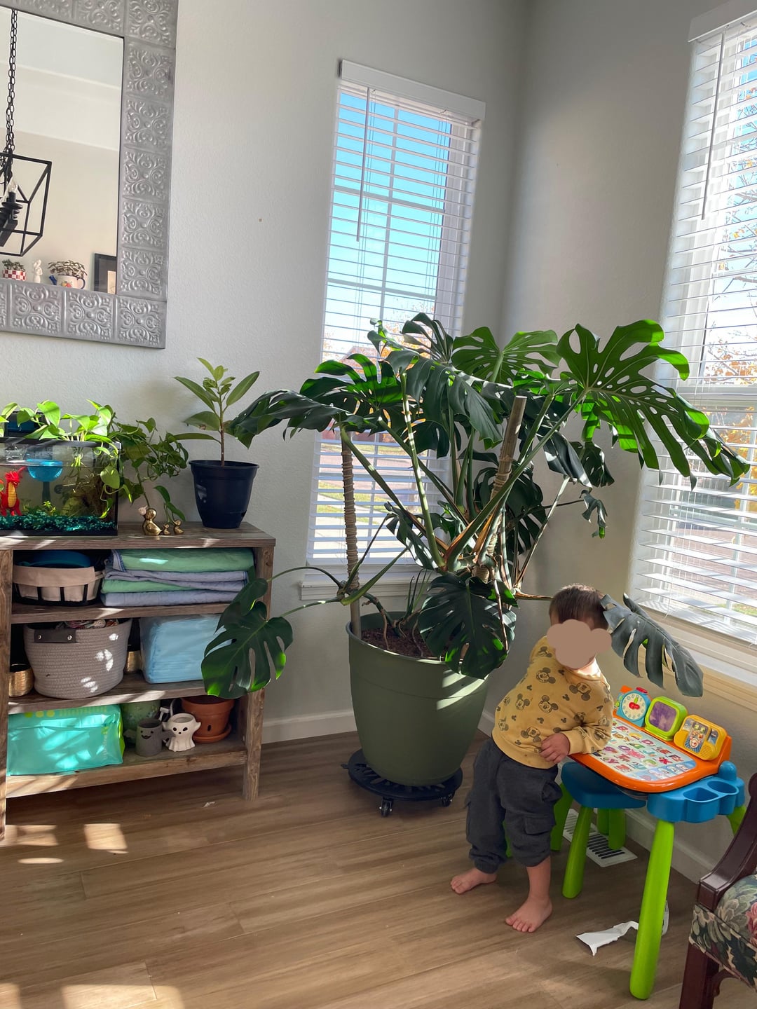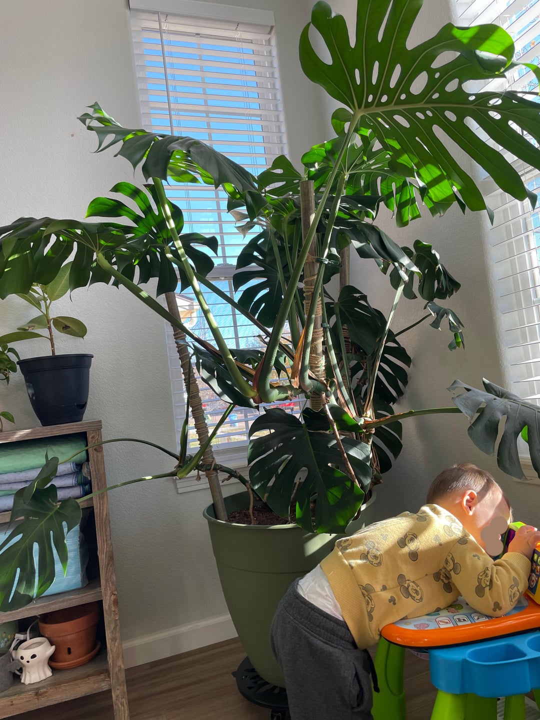 5歳のモンステラを飼っていますが、ここ1年で2倍近くに成長しました。鉢の中には3つの別々の植物が見えます。正直、この時点で植え替えるのが怖いのですが、植え替える必要があると思う人はいますか?体重計のことで怒っている2歳児、バナナを食べてしまってごめんなさい。