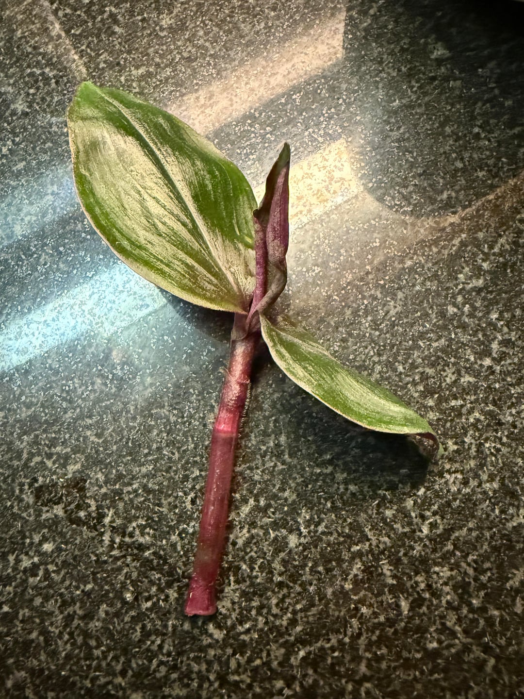このトレードス​​キャンティアを見つけましたが、識別できません。葉の裏はビロードのような緑色と紫色です。