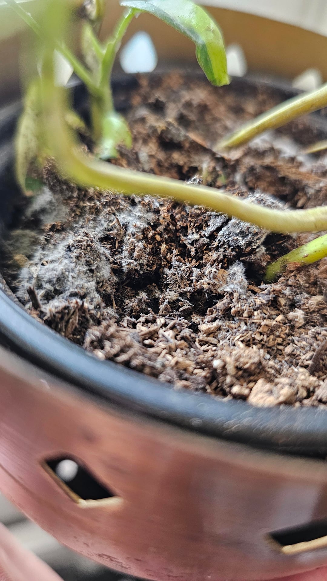 すでに土の上にカビが生えているように見えるのはなぜだろうと心配しています。特定の土壌混合は行いませんでした(私の問題かもしれません)。