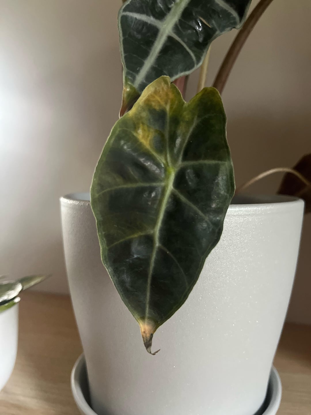 1週間前にこのクワズイモを購入しましたが、葉に黄色と茶色の斑点ができ始めています。これは私が初めて飼ったクワズイモですが、何が苦手なのかわかりません。葉が非常に垂れ下がっていて、柔らかいようです。これについてオンラインで何も見つかりません。助けてください。