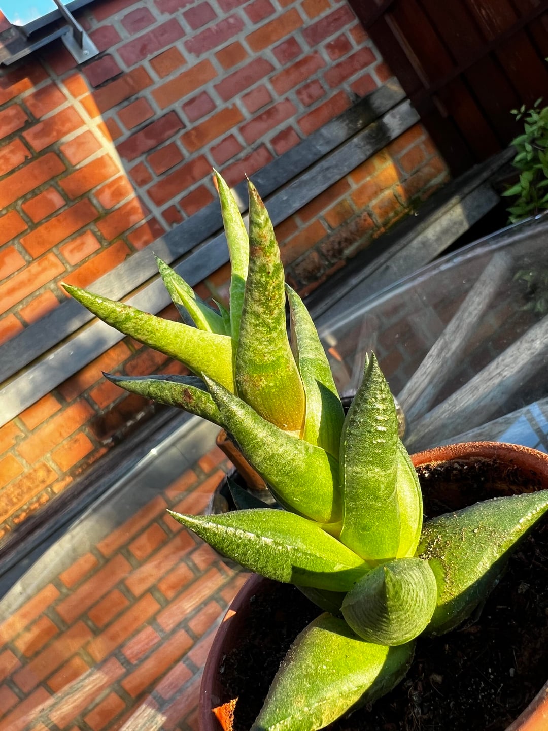写真が悪くて申し訳ありませんが、基本的に上部の成長には奇妙な白と茶色の斑点があり、何が原因で発生したのかわかりません。日焼けについて何かで読んだことがありますが、この男性は2年前から同じ場所にいて、最近その跡が現れ始めました。何が起こっているのか知っている人はいますか?