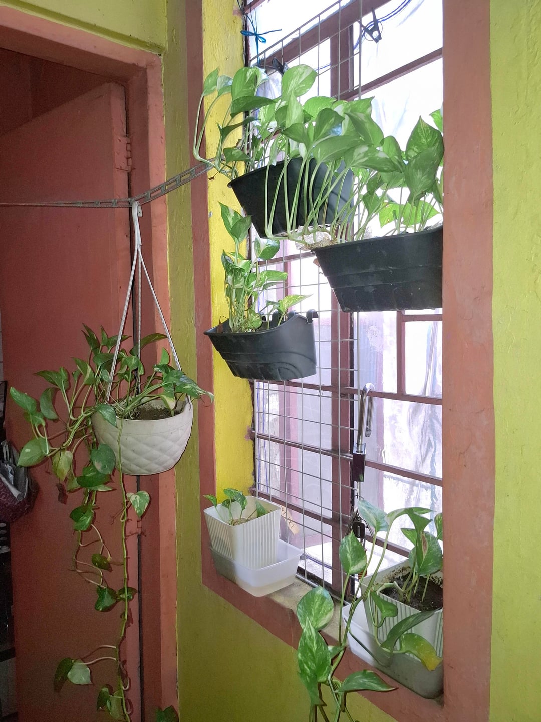 洗濯物を干さない日は、物干し竿が植物ハンガーとして使えます。他のものはすべて、家の中で半日光の下で成長し、繁殖します。