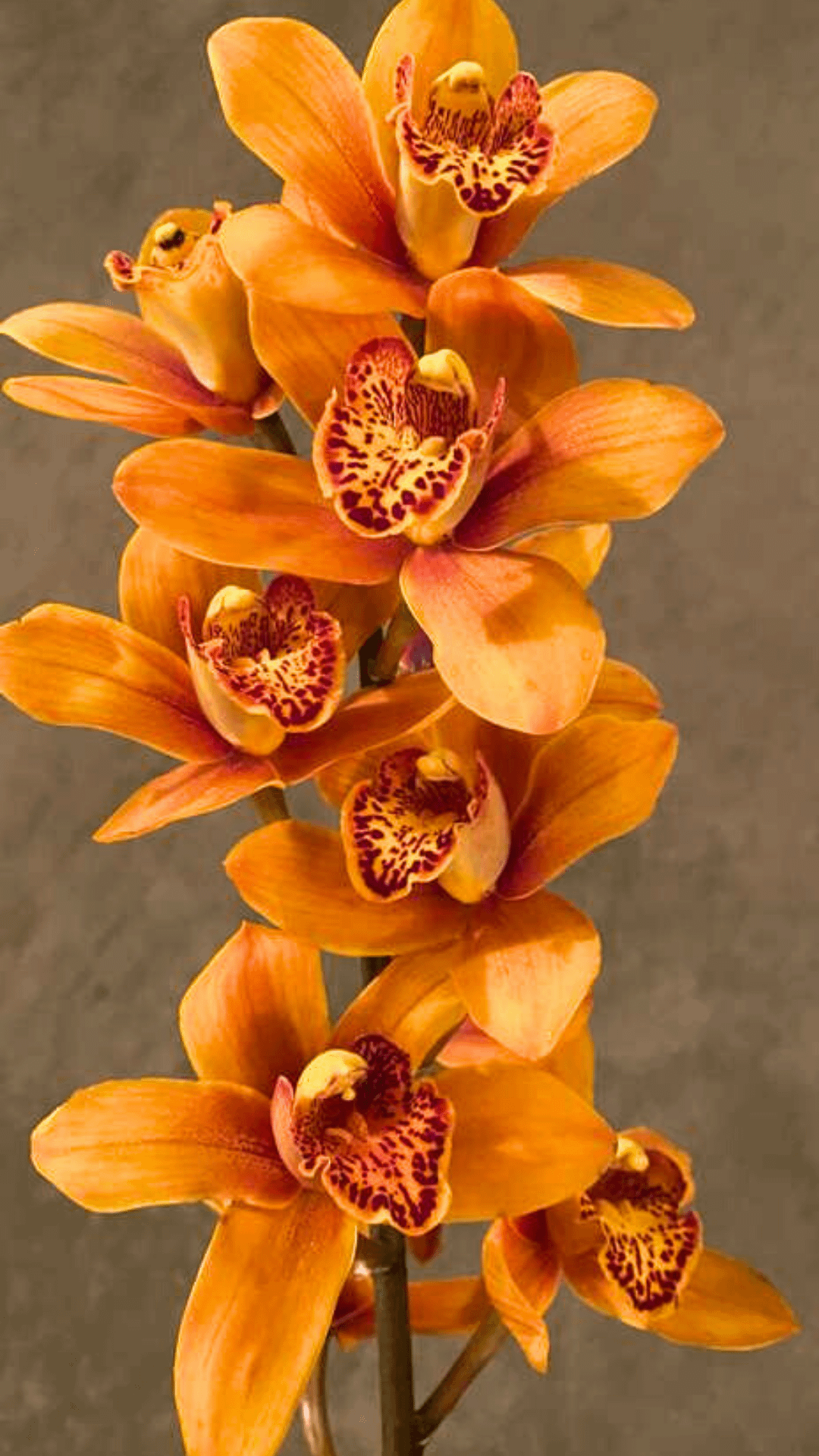 新たなスタートのために、切りたてのシンビジウムの茎を使いました。今日の気分はピンクとオレンジどちらですか?