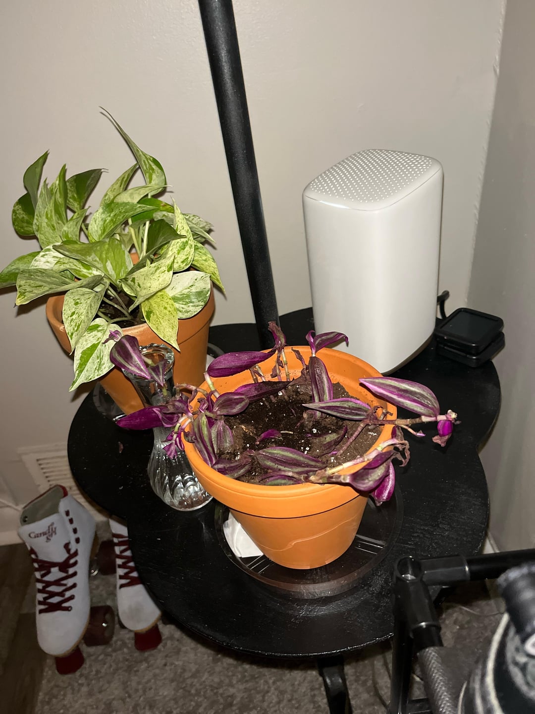 これは私の初めての reddit 投稿です、いやー、とにかく、私は初めて植物を育てる母親で、母がマーブルクイーンポトス (とても幸せそう??) とムラサキツユクサゼブリナをくれました。放浪の男は、母たちのところにいる間、少し悲しそうな顔をしていました。彼女は光が足りていないのではないかと思いましたか?それらを売った女性は、おそらくすぐに植え替えが必要になるだろうと言いました。とにかく、明るい間接光が当たる場所に置きましたが、猫が噛み続けたので、状態が悪化しているように見えました:(植え替えてもいいのでは?と思ったので、植え替えました…(見た目は悪いです)そして、猫が届かない場所に移動しました。植え替えたとき、根鉢さえ見つかりませんでした。特定の部分に小さな根があっただけで、それらはどれもつながっていませんでした。アドバイスはありますか?現在、万が一に備えて健康な部分を繁殖させようとしています。土が外側は乾いているのに内側が濡れている理由もわかりません。両方の植物に必要なものがあるので、それが必要であるかどうか教えてください。また、できる限りの助けが必要ですが、それらを使用する必要がある場合はわかりません。