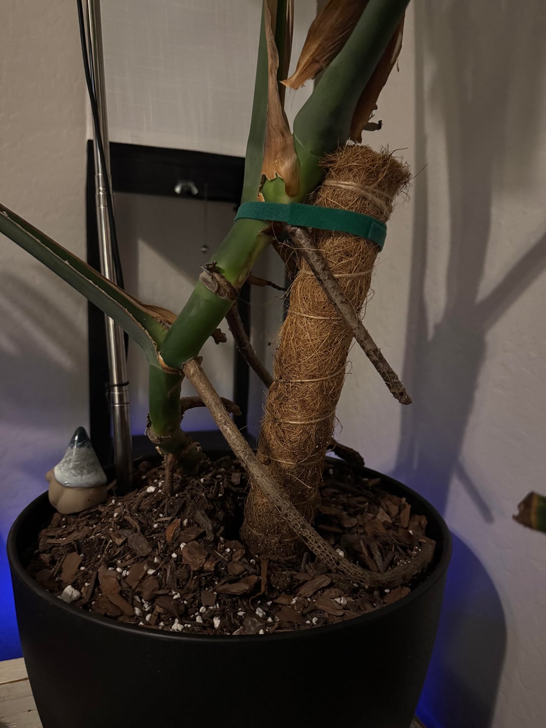 このモンステラは12インチの自動じょうろに入っています。暴れてしまったので植え替えをしなければいけないのですが、自分で植え替えをしたことがないのでアドバイスが必要です。この茎をすべて新しい鉢に刺してもいいでしょうか?基本的にはモスポールの上部から下まで16インチです