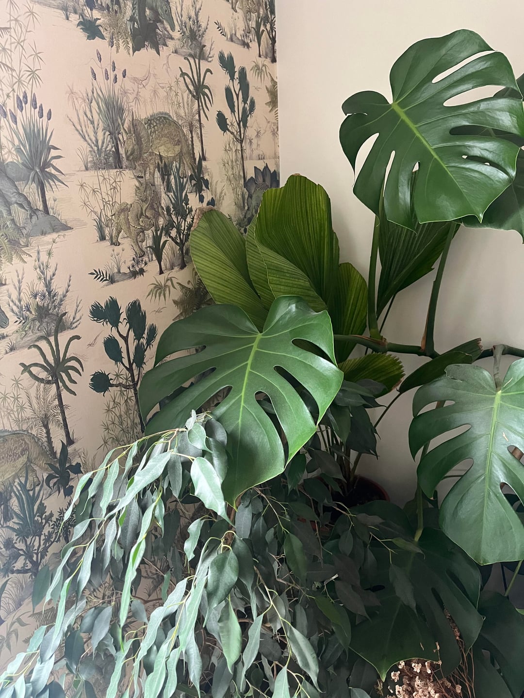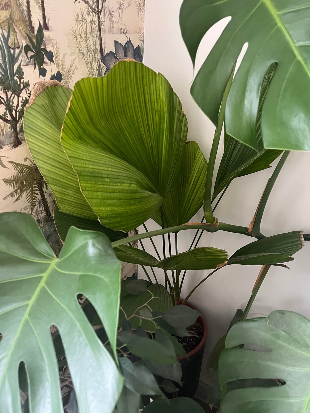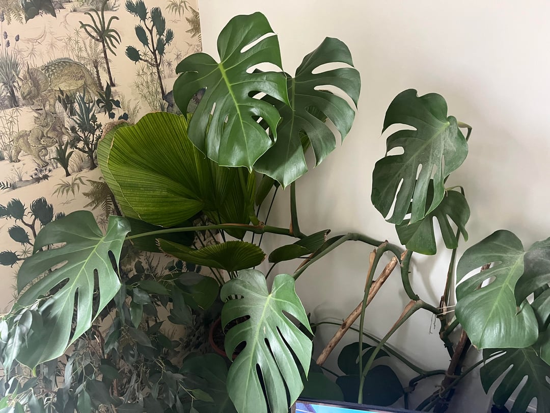 フリルパームについて心配する必要がありますか?モンステラが空間を支配し始めています。光と空間を奪い合うのは良いことなのだろうか?どちらも成熟した、健康な、成体の植物です。