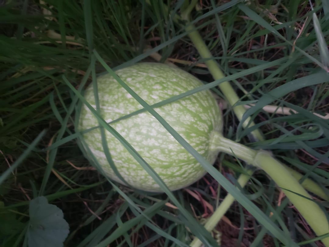 これは、約1年前に近所の人が親の実を庭に投げ込んだ後、私の庭で勝手に発芽して成長した2つのカボチャの植物です。冗談ですよ、私は カボチャ、そしてこれらのものはメロンと同じくらい大きいです!