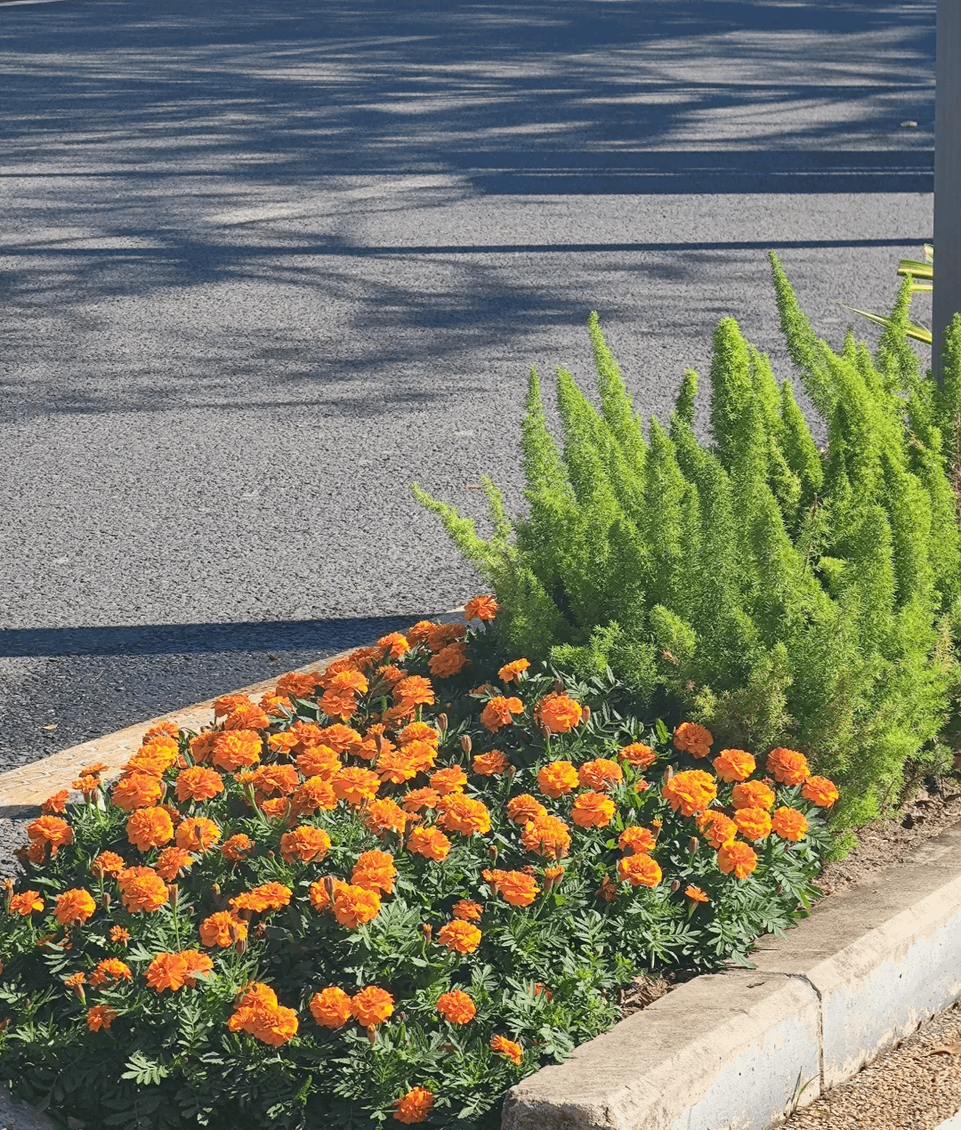 街路沿いの花や植物が慌ただしい通行人を和ませてくれる
