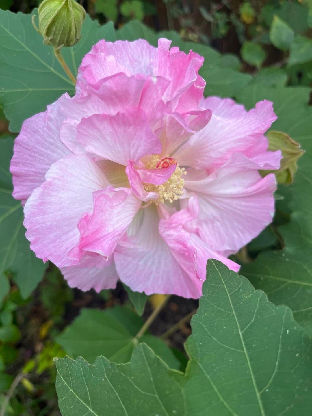 一日を通して色が変化し、朝には白または淡いピンク色に開き、夕方にはピンク色、そして深紅に熟します。