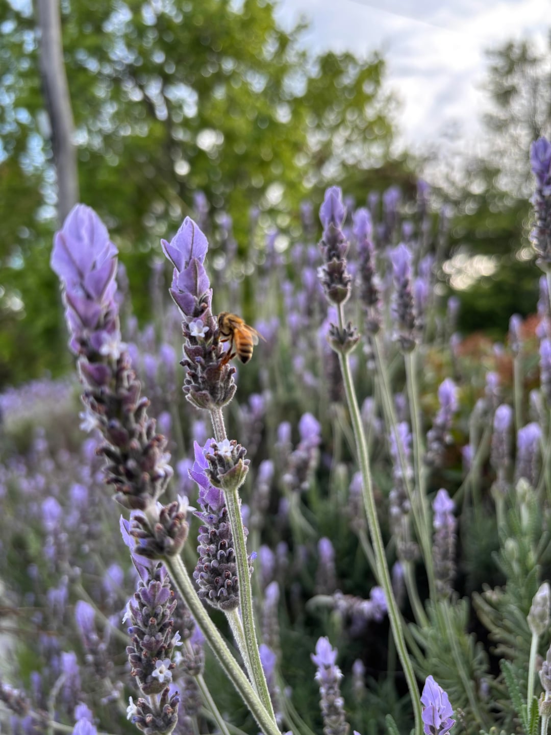 私は毎日このラベンダーの前を走ります、今日は小さな友達に会いました 💜🐝 [OC]