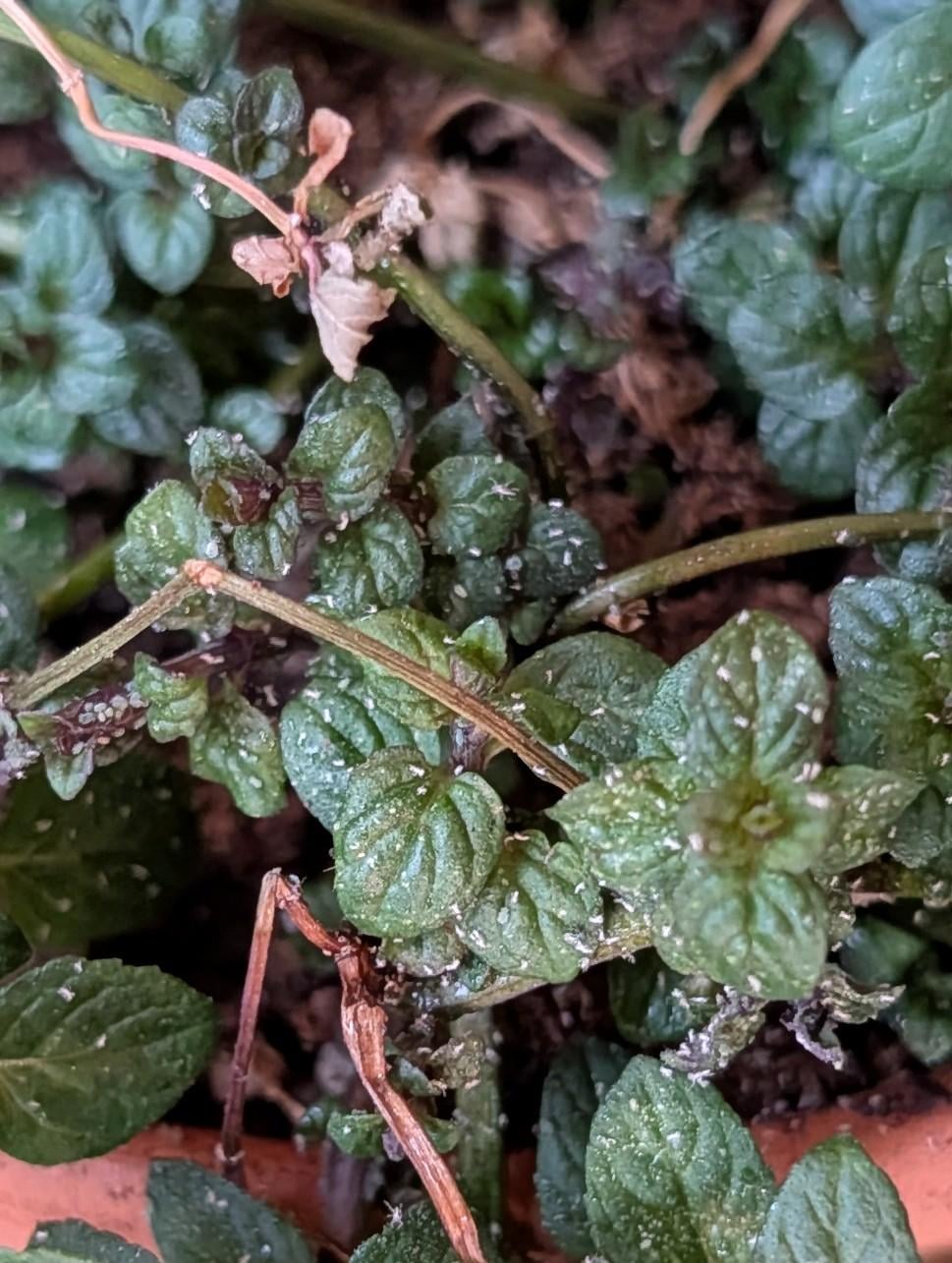 ここに投稿したくない場合はお知らせください。これが私の最初の家なので、植物については初心者です。 10週間ほど前にこのミントを入手しました。葉っぱにある白いものに気づいたのは初めてですが、これは何ですか?
