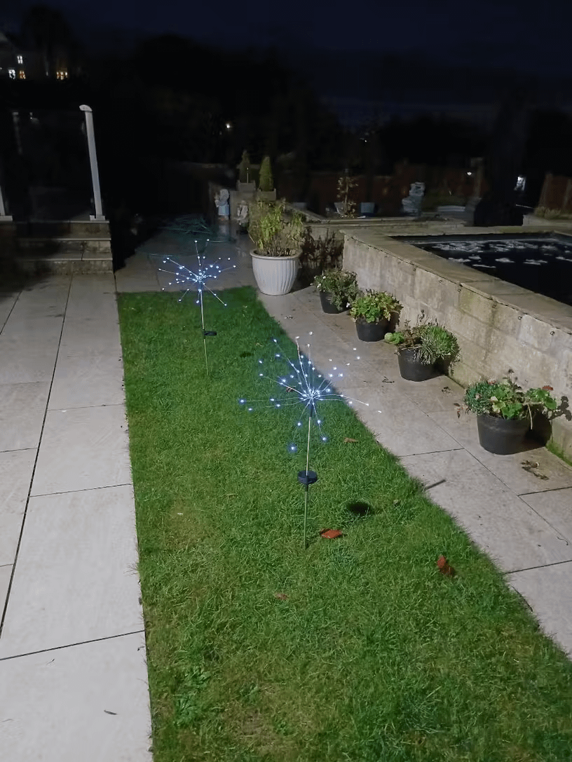 庭にキラキラしたライトを追加しました。夜には小さな花火のように見えます。