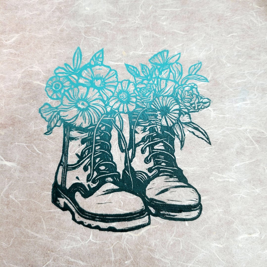 ブーツと花