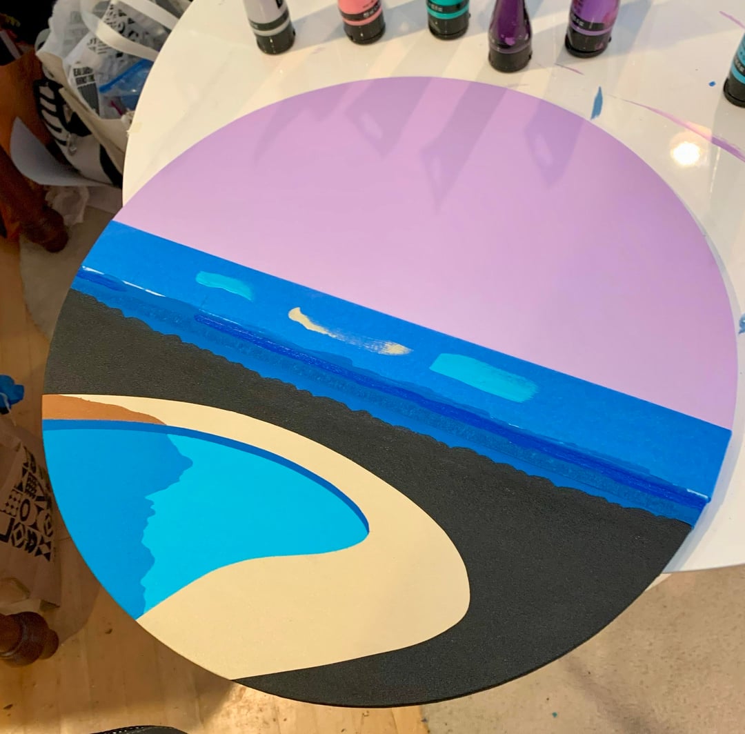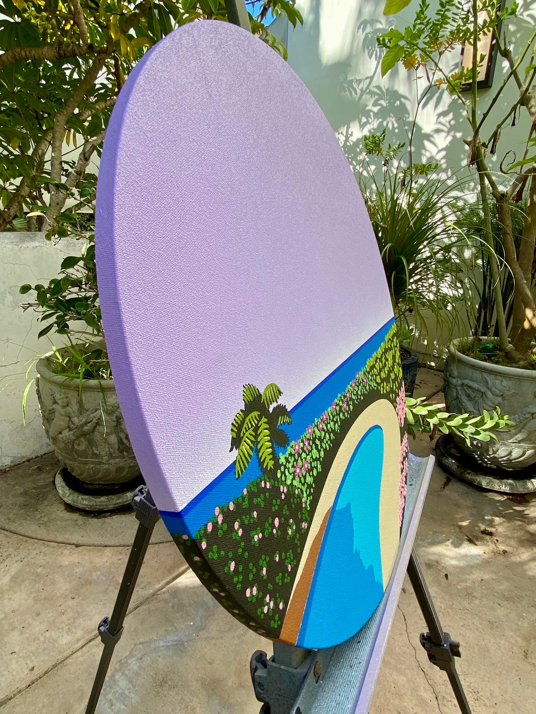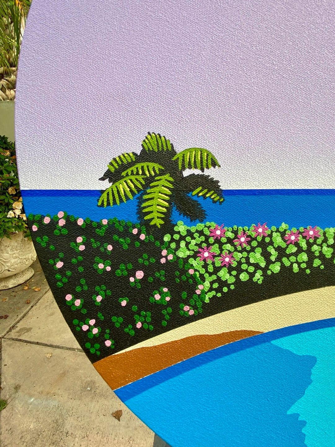 南国の楽園のプールサイドで花を描きました