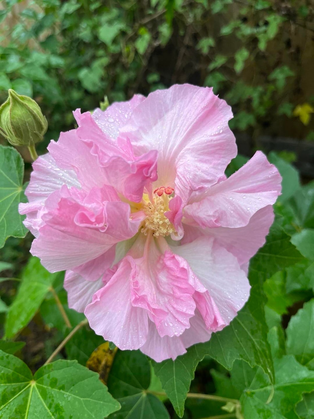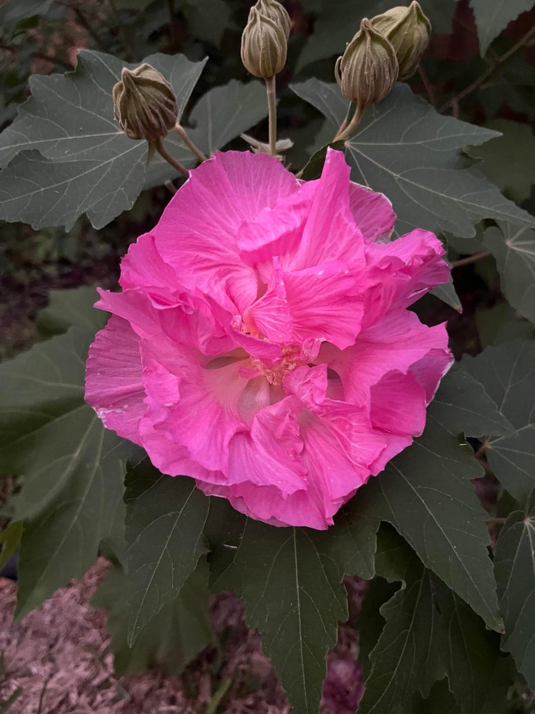 一日で白からピンク、そして深紅へ。さらに驚くべきことは、親株の花は一重で色がまったく変わらないことです(最後の写真)。
