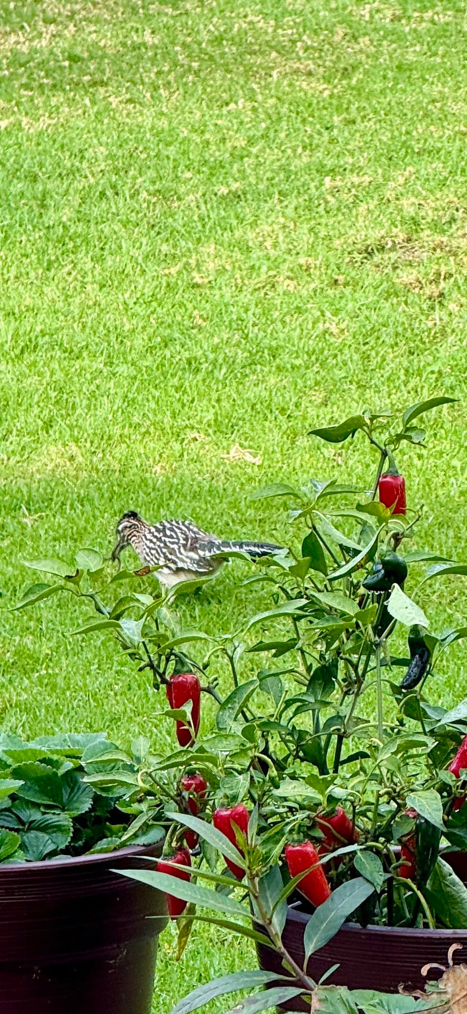 今朝、サンディエゴ北部郡でこれらの写真を撮りました。 24時間以内に2.5インチの雨が降りました。雨が降った後、太陽と虫たちが顔を出し、鳥たちが活発に動き始めました。時々餌を食べに来てくれる近所のロードランナーさんですが、今日は「陸鰻」(ミミズ)を食べていました。これらを窓越しに撮影しました。