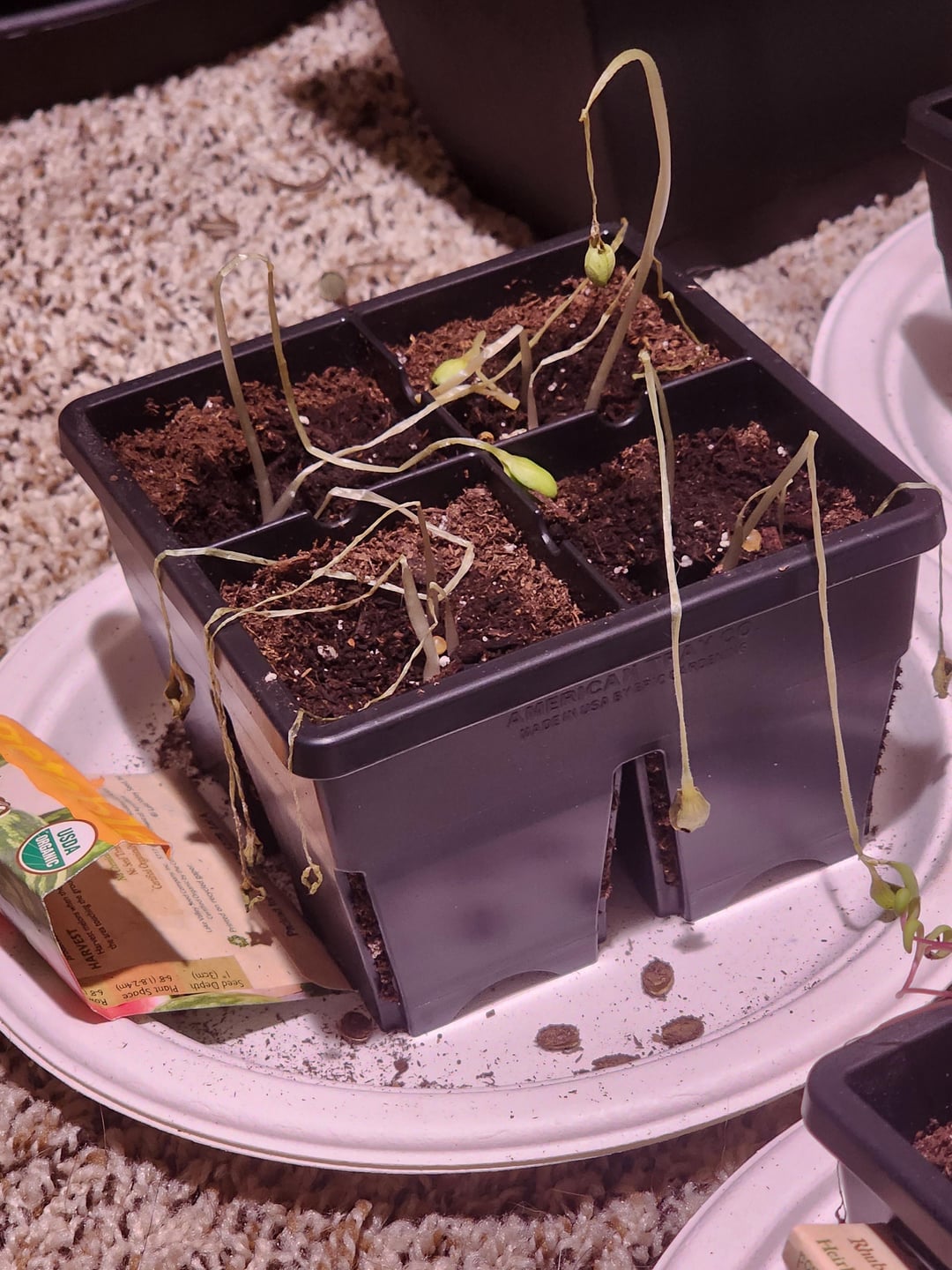 私の友人はユニークな贈り物を作るために果物や野菜を栽培していますが、私たちは苦労しています。すべて順調に始まりましたが、植物には問題が発生し始めました。ブルーベリー、スイカ、カボチャ、スイスチャード(偶然植物でした)、ローズマリー、ピーマン、チェリートマト、アスパラガス、カーネーション、ダリア、ちょうちん、ペチュニアなどがあります。主な品種は、スイカ、ダリア、カーネーション、スイスチャード、ローズマリー、そしてブルーベリーだと思います。ブルーベリーの葉は少し丸まって、茶色の縁と斑点があります ローズマリーはすべて茶色になって、茎から落ちています スイカは何度も折りたたまれているようです そして他のものは少し悲しそうに見えます。条件:約73度の部屋の植物育成ライトの下のクローゼットの中で大好きです。以前は、グローライトが1日約15〜17時間点灯していたので、私たちは9時間程度に減らし、まだ本当に濡れていない限り、毎日水やりをしています。もっと水が必要ですか?水が少ない?光が少ないですか?涼しい部屋?肥料か酸性か?私の友人が自分自身に本当に失望しているので、この問題を解決できるようにするにはどうすればよいでしょうか。どうすれば助けられるか考えています。アドバイスはいくらでも受け付けますよ、タイ!