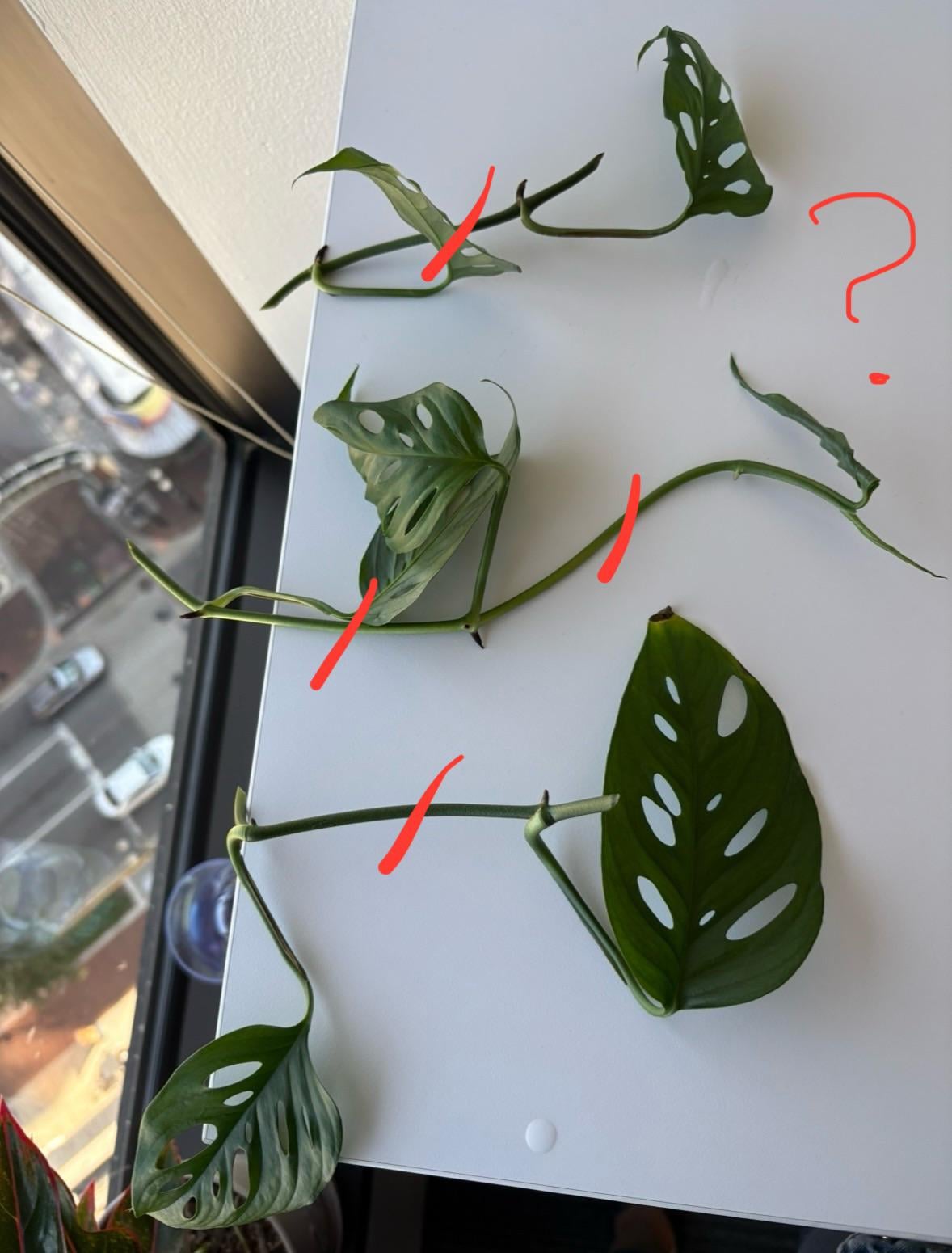 スイスチーズの植物を水中で増殖させようとしましたが、1週間後に水の端が茶色になり始めました 切り取って乾燥させて今のところ硬さを形成しています 私が目にするほとんどの挿し木は、挿し木ごとに 1 つの茎と節がありますが、私はこれらの長いものを増やしてみました。もう一度試してみるか、それとも写真のように茎と節をそれぞれ 1 つに切り落としたほうがよいでしょうか?