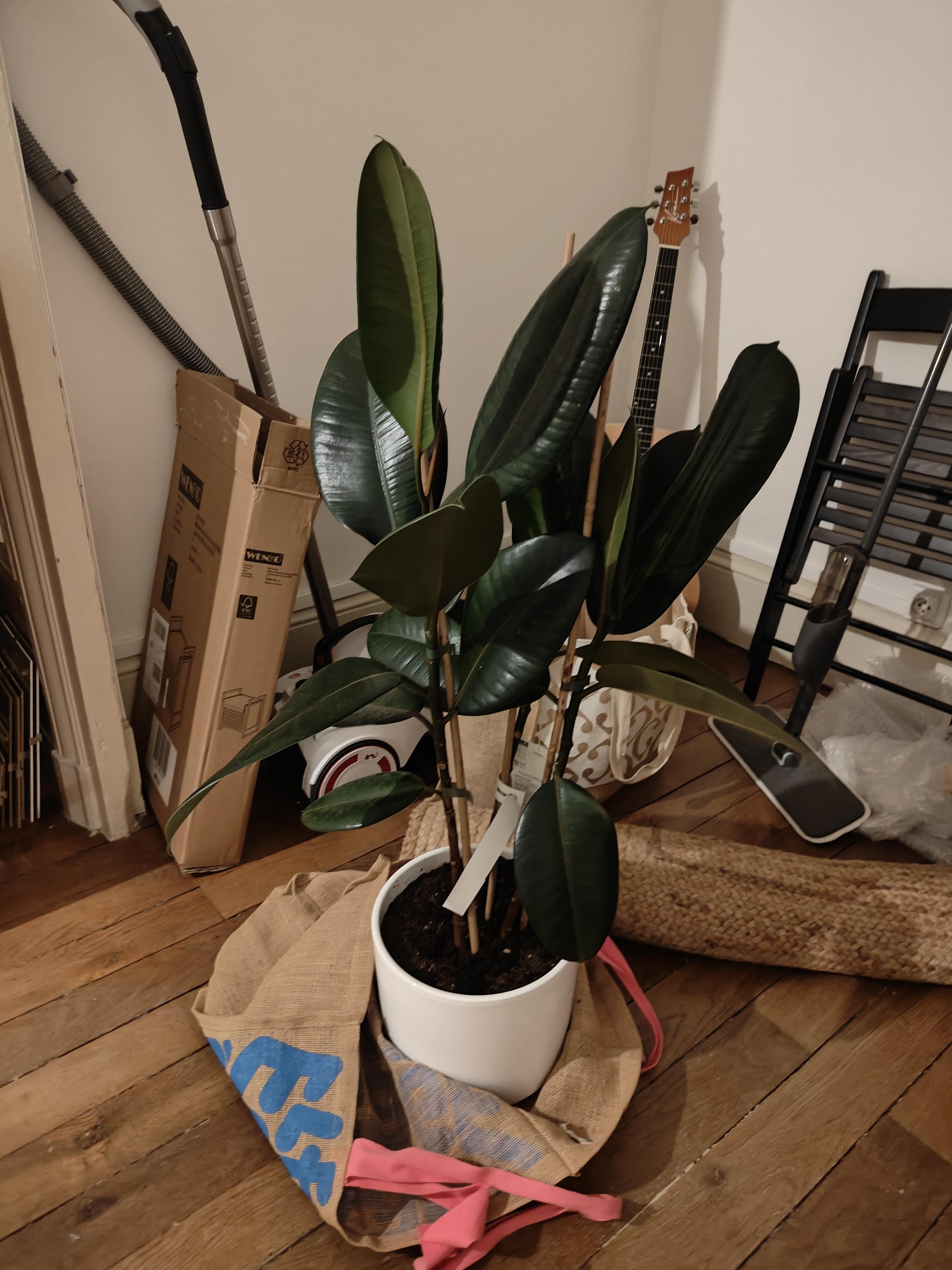 私の地元の園芸センターの 1 つは、Too Good To Go にあり、時々非常に安い価格で観葉植物を販売しています。を購入しました "バッグ" 病気になったり、見た目が悪すぎたりして売り物にできない植物を手に入れるだろうと考えていましたが、代わりに、90 ドル相当の素晴らしいフィカス エラスティカを持って家に帰りました 🤩 とても幸せです!