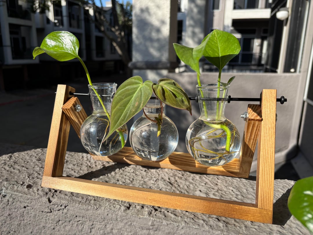 私のスターターコレクションを見せびらかしたいだけです!私はそこかしこで植物を手に取り、植え替えて愛情を注ぎながら、約6か月間作業を続けてきました。棚の上にある長い蔓は母親で、他の小さな挿し木はすべて母親から来ています。 ご覧いただきありがとうございます。良いものをお過ごしください 😄