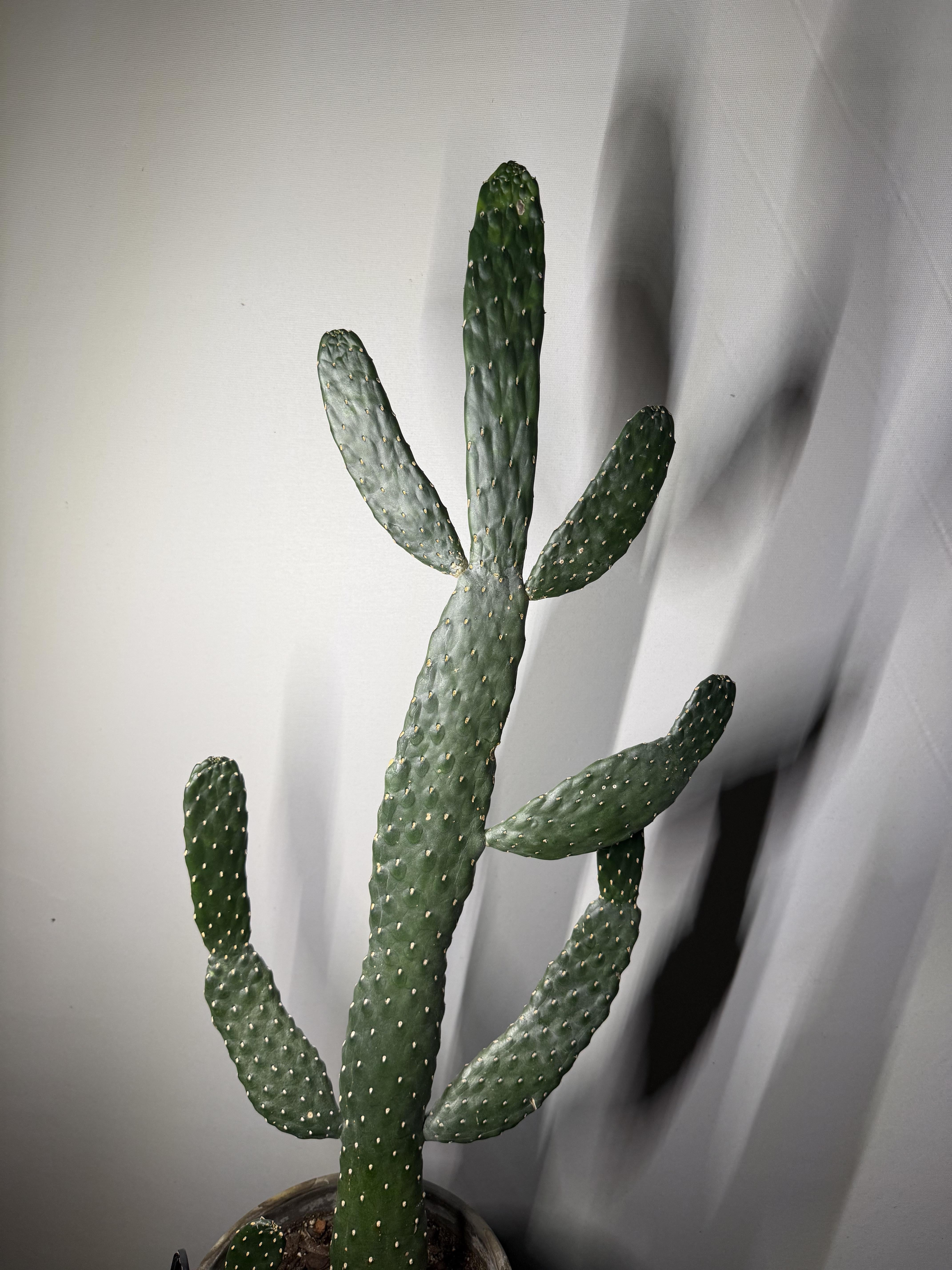 私のウチワサボテンは十分な光を受けていませんか?/正しい種類の光が足りていませんか? 1.5年前に入手したときは真ん中の腕のセットしかありませんでした